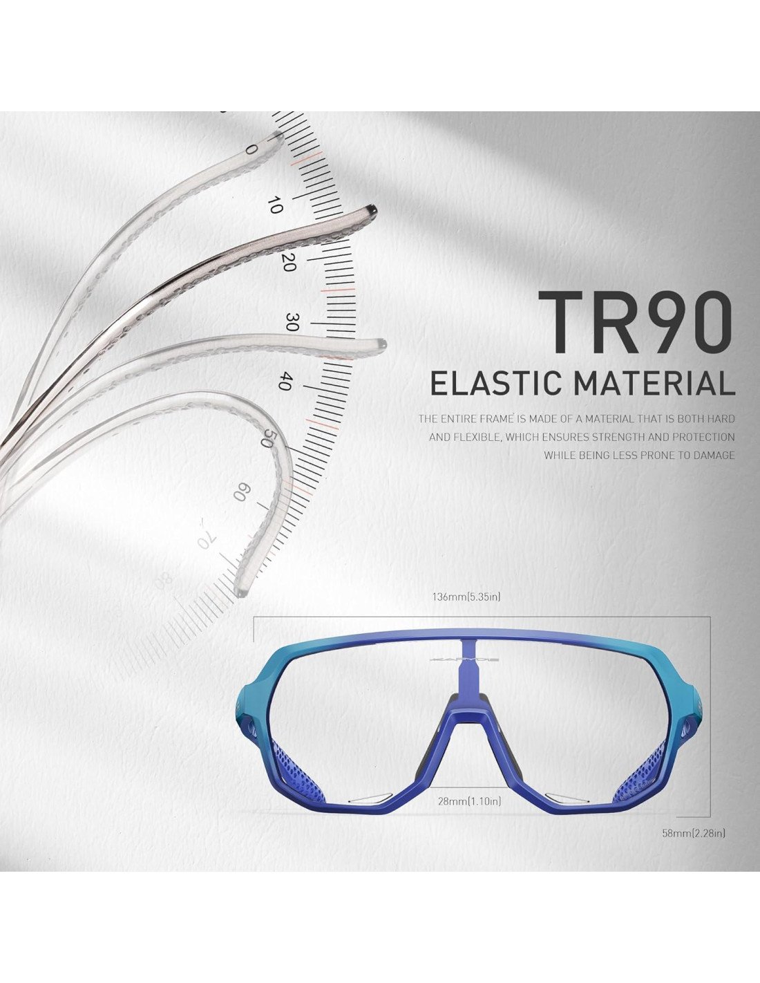 - Diseño de Goma Cómoda Estas gafas de bicicleta de montaña fotoquímicas están equipadas con almohadillas nasales de goma suave y un marco flexible TR90 que te brindan una experiencia de uso más cómoda, pueden adaptarse a diferentes formas de cara.
