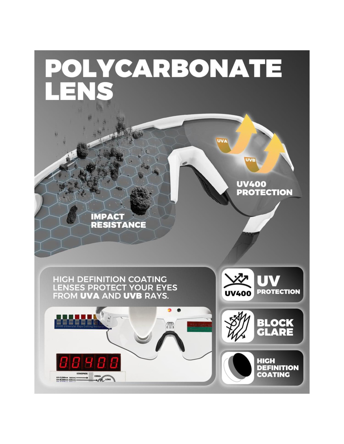 - Protección Ocular: Las gafas de sol para ciclismo para hombres y mujeres con lente fotocromática de PC con recubrimiento de protección UV400 ayudan a bloquear los dañinos rayos UVA y UVB, que pueden proteger tus ojos contra la fuerte luz solar, barro, polvo al ciclar o conducir.