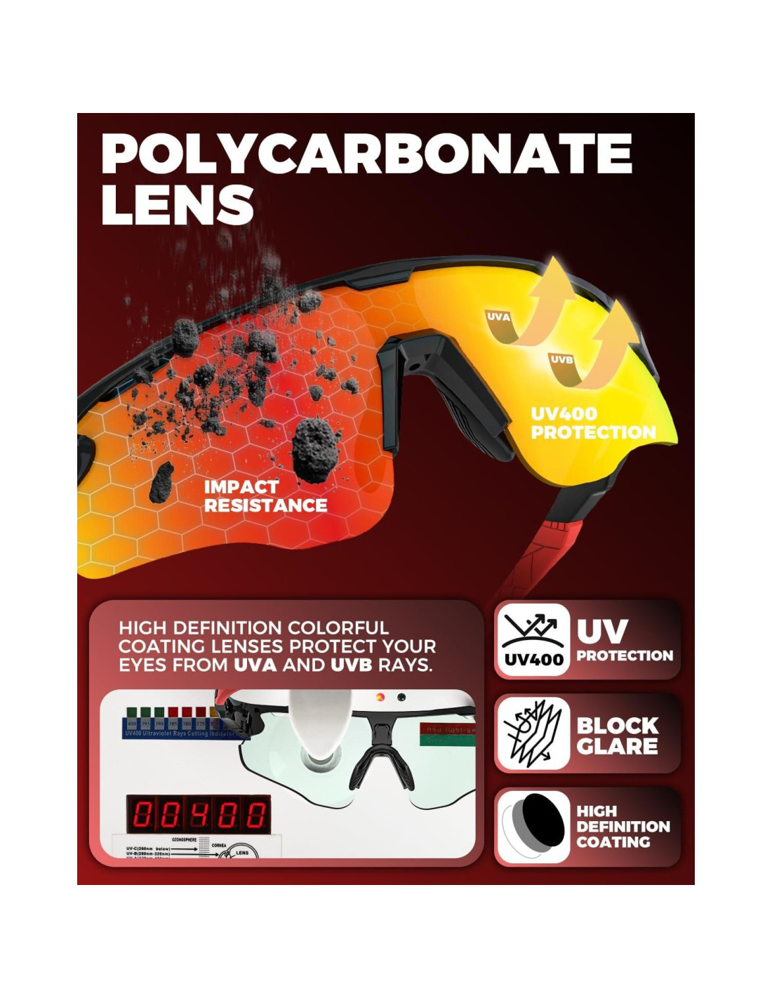 - Protección Ocular: Las gafas de sol para ciclismo para hombres y mujeres con lente fotocromática de PC con recubrimiento de protección UV400 ayudan a bloquear los dañinos rayos UVA y UVB, que pueden proteger tus ojos contra la fuerte luz solar, barro, polvo al ciclar o conducir.