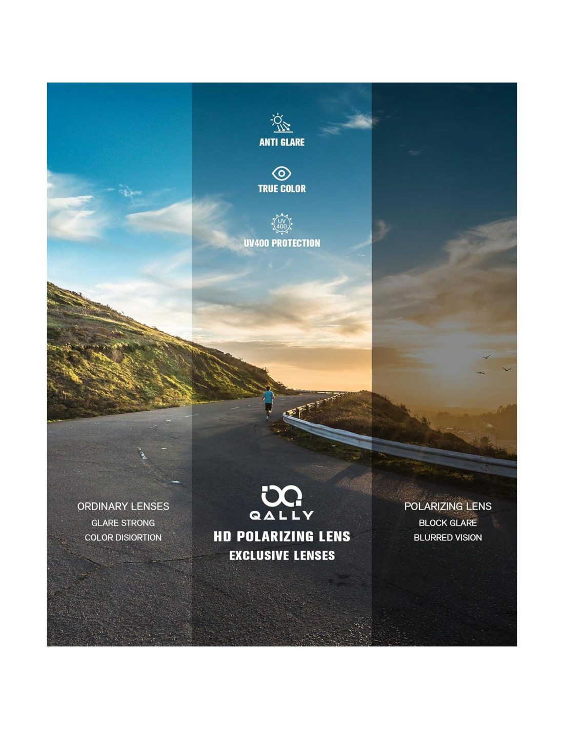 - Tecnología de marco flexible QALLY - Redefiniendo las gafas de sol para hombres con un marco ultraligero y resistente al calor diseñado para la comodidad durante todo el día. Con almohadillas nasales antideslizantes y un ajuste universal para todas las formas de cara, estas gafas de ciclismo y gafas de sol deportivas destacan en estabilidad durante la carrera, el senderismo o las aventuras al aire libre.