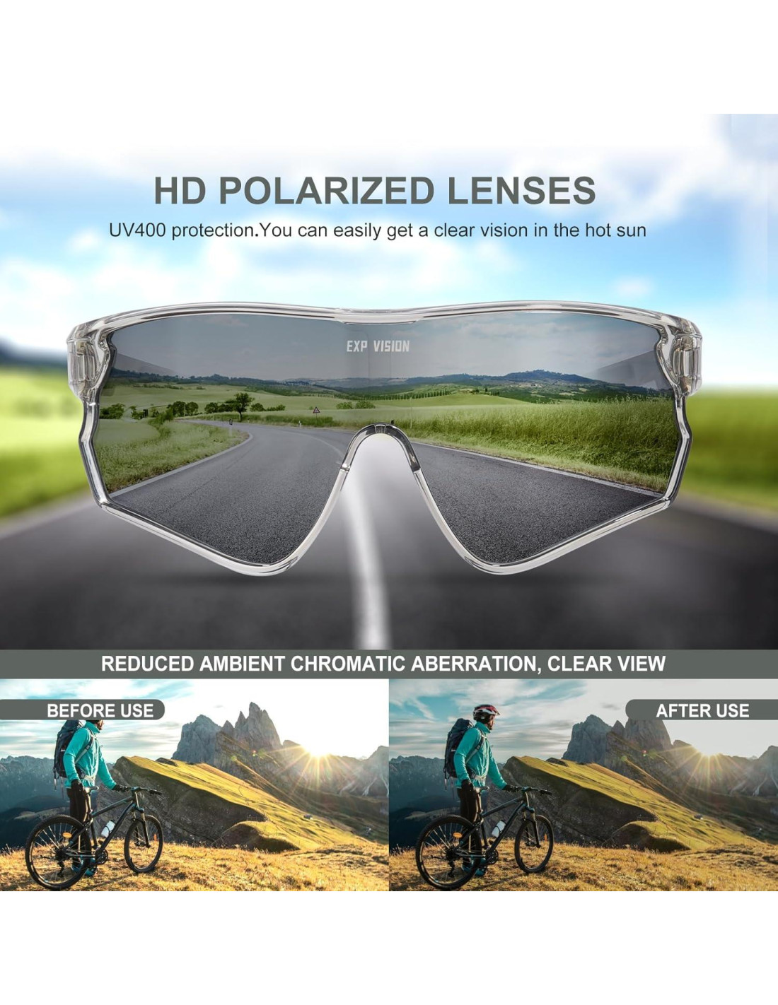 - 100% Protección UV400 Nuestras lentes de gafas de ciclismo polarizadas están fabricadas con policarbonato óptico de alta calidad, asegurando una resistencia superior al impacto. Además, cuentan con un recubrimiento de protección UV400 al 100%, protegiendo efectivamente tus ojos de los dañinos rayos UVA y UVB. Esto no solo restaura la claridad natural de la escena, sino que también elimina el astigmatismo, ofreciendo una protección ocular inigualable.