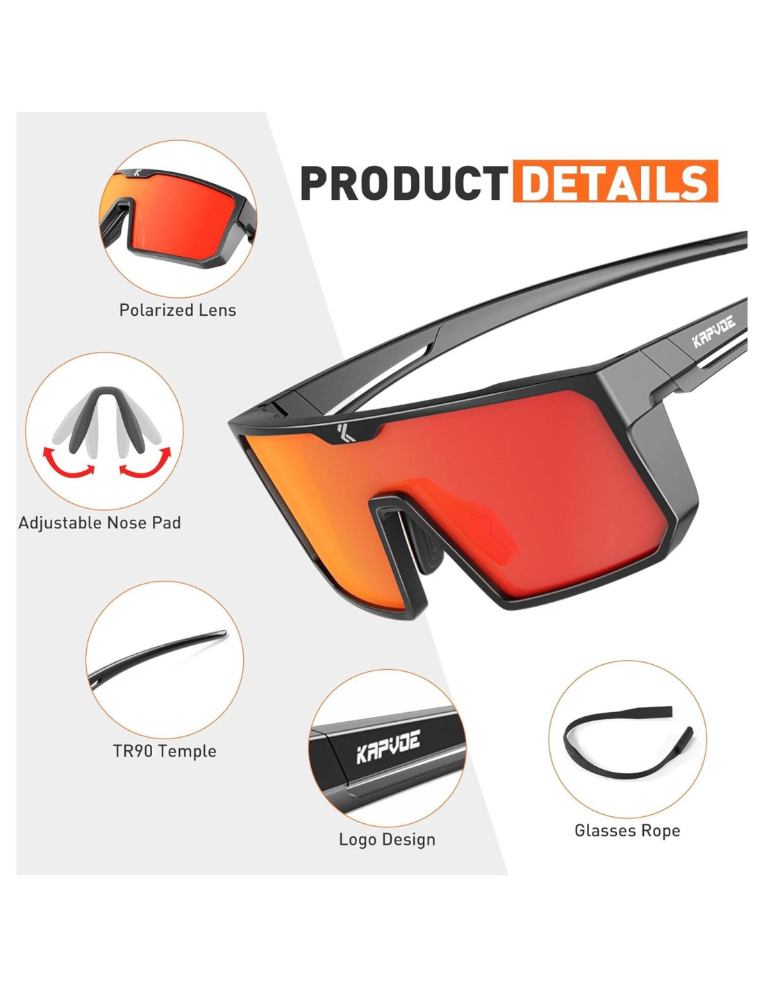 - Uso Multifuncional Estas gafas deportivas polarizadas KAPVOE son perfectas para actividades al aire libre como ciclismo, montar en bicicleta, correr, MTB, béisbol, conducir, triatlón, pesca, turismo de montaña, sóftbol, senderismo, etc.