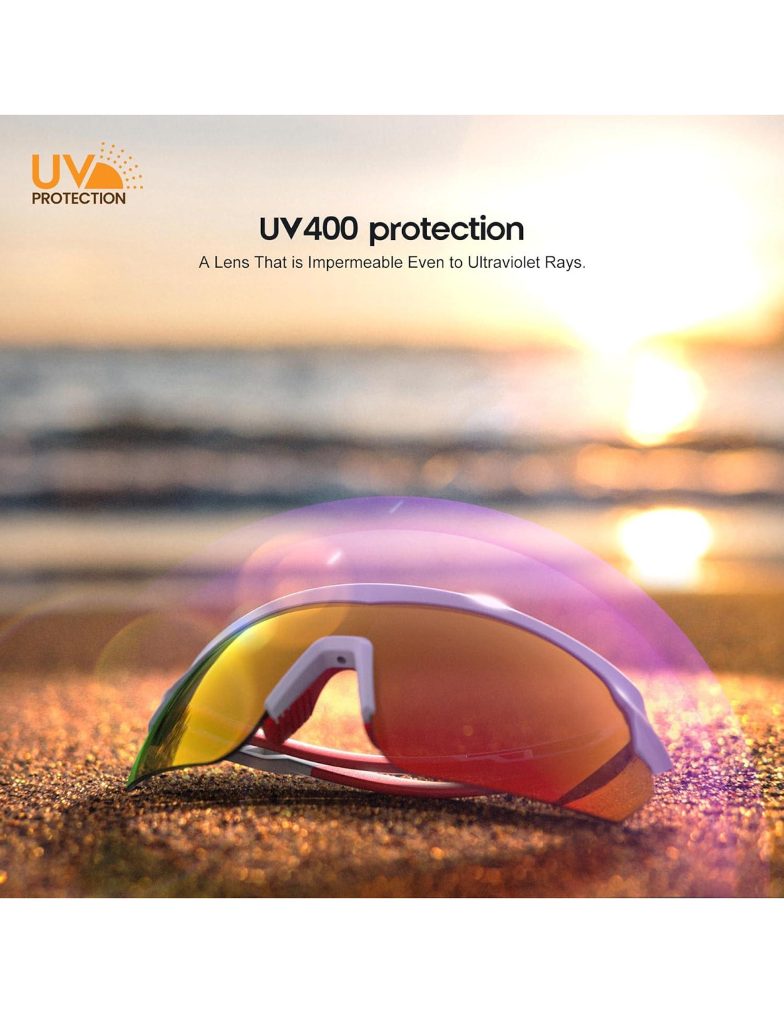 - Material de PC de Alta Calidad: Estas gafas de sol deportivas están hechas de material de PC de alta calidad, duradero y cómodo. Los lentes resistentes a los arañazos son prácticamente irrompibles, proporcionando una protección confiable para tus ojos durante actividades al aire libre