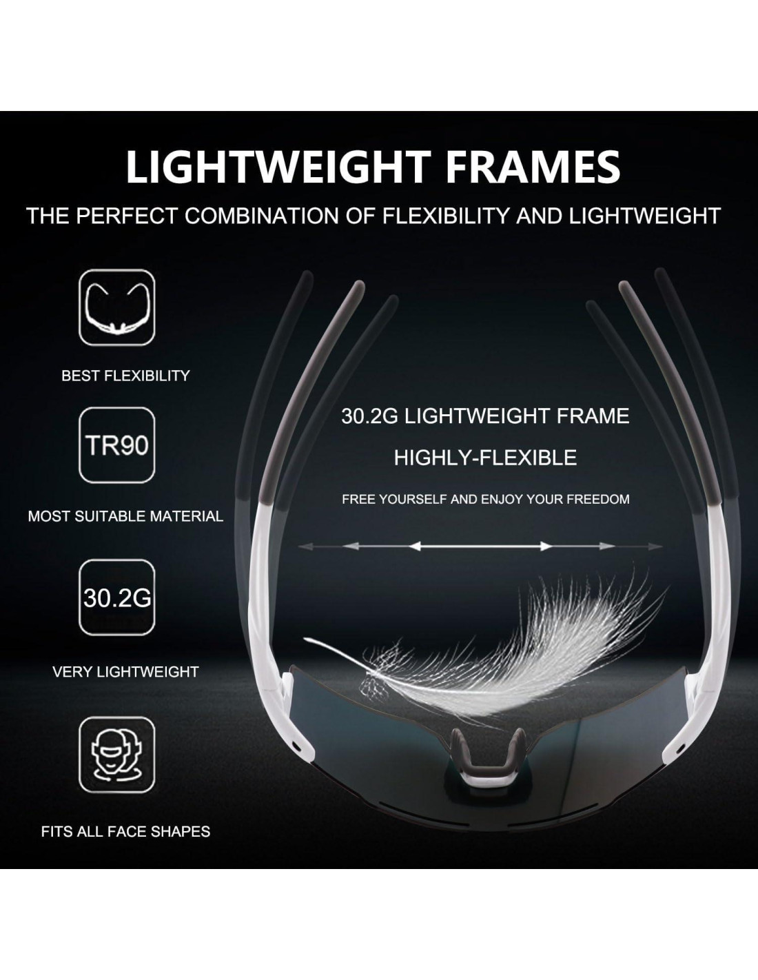 - DISEÑO LIGERO: Nuestras gafas de sol deportivas están hechas de un marco duradero y fuerte y lentes con protección UV, diseño ligero, pesan solo 25 g que apenas sentirás que las llevas puestas; El marco puede doblarse bajo presión y contornear tu cara cómodamente; Ideal para uso en motocicleta, ciclismo, conducción, running, béisbol, pesca, carreras, golf y escalada, trekking u otras actividades al aire libre