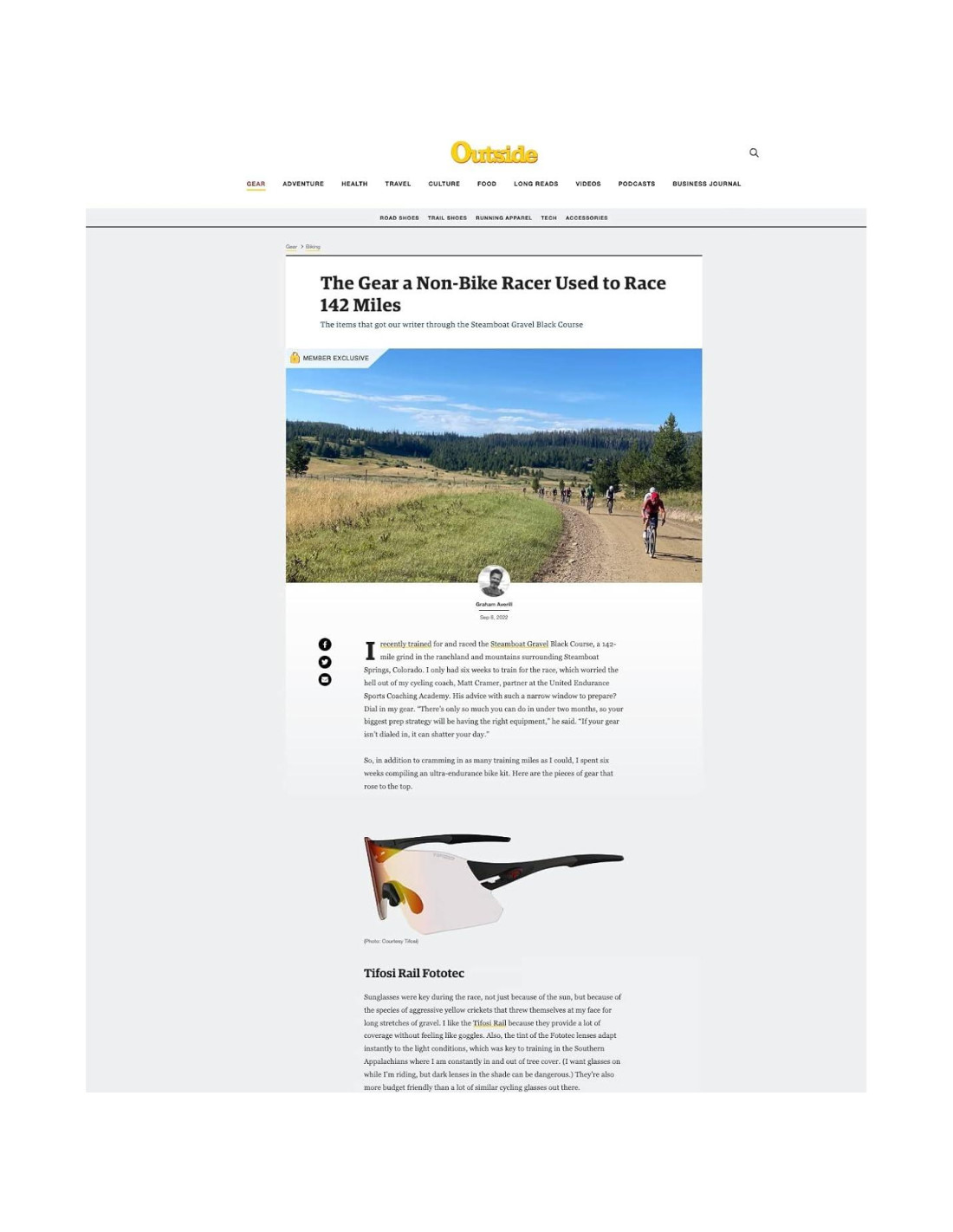 RAIL: VISIÓN ÓPTIMA PARA CICLISMO Y BÉISBOL Mejora tu experiencia en ciclismo y béisbol con las gafas Rail, meticulosamente diseñadas para satisfacer las necesidades únicas de ciclistas y jugadores de béisbol. Descubre la fusión perfecta de estilo, comodidad y rendimiento. Marco Sin Montura Innovador Para Mayor Cobertura Rail cuenta con un marco sin montura innovador y de gran tamaño que proporciona mayor cobertura y protección para tus ojos. Las lentes irrompibles aseguran una protección a largo plazo, haciendo de Rail una opción duradera para actividades de ciclismo y béisbol. Comodidad Ligera Para Rendimiento Ininterrumpido Diseñadas para ser ligeras y cómodas con solo 32 gramos, Rail te permite concentrarte en tu deporte sin distracciones. El marco de escudo sin montura no solo mejora la protección contra los escombros, sino que también asegura un flujo de aire máximo. Mantente fresco y cómodo, ya sea que estés en tu bicicleta o en medio de un juego de béisbol. Hechas a Medida Para Ciclistas y Jugadores de Béisbol En Tifosi, reconocemos las necesidades únicas de ciclistas y jugadores de béisbol. Rail está fabricada con la última tecnología y materiales, proporcionando lo último en comodidad, estilo y funcionalidad. Ya seas un atleta profesional o disfrutes del ciclismo o béisbol por diversión, Rail es la elección ideal para ti. Invierte en Tu Rendimiento y Seguridad Invierte en las gafas Rail hoy y experimenta la diferencia transformadora que aportan a tu rendimiento y seguridad en actividades de ciclismo y béisbol. Con calidad y diseño superiores, ten la seguridad de que Rail se erige como la cima de las gafas para estos deportes. Confianza en Cada Paso y Swing Con Rail, obtienes no solo gafas, sino un compañero en tu viaje de ciclismo y béisbol. Confía en la calidad, diseño y rendimiento que Rail aporta a cada paso en el camino de ciclismo y cada swing en el campo de béisbol. Eleva tu juego con Rail. CARACTERÍSTICAS CLAVE DE LA TECNOLOGÍA DE LENTES RAIL El escudo sin montura ofrece protección UVA/UVB. MARCO LIGERO Solo 32 gramos fabricados en Grilamid TR90, duradero y ligero para comodidad durante todo el día. TECNOLOGÍA DEL MARCO Almohadillas nasales y de orejas totalmente ajustables, almohadillas de goma hidrofílica que aumentan el agarre cuanto más sudas. IDEAL PARA Béisbol, Ciclismo (Gravel, carretera y bicicleta de montaña) AJUSTE Grande - Extra Grande INCLUIDO Estuche rígido con cremallera y bolsa de limpieza de microfibra. Patente de EE. UU.: 8613515