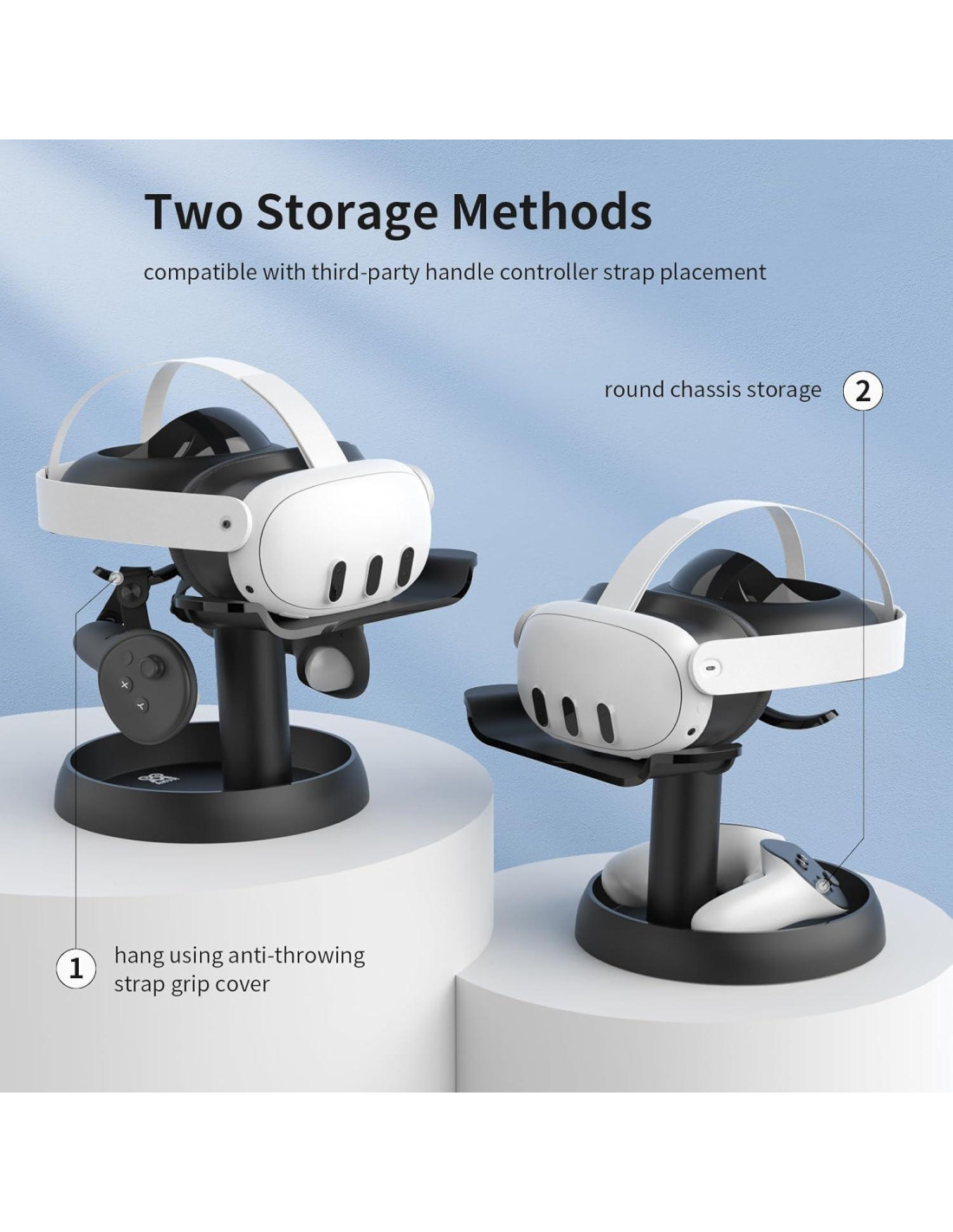 - [Espacio de Almacenamiento Diversificado] Almacenamiento diversificado y conveniente para usar con Quest 3/Quest 2, almacenamiento de múltiples accesorios. La bandeja redonda inferior puede almacenar mejor los controladores VR, y el gancho del soporte puede almacenar controladores con cubiertas de mango.