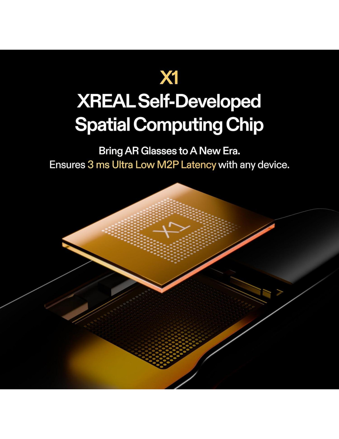 - Chip de computación espacial desarrollado por XREAL. El Chip X1 lleva el rendimiento al límite en un diseño compacto, ofreciendo una gran mejora para el XREAL One.