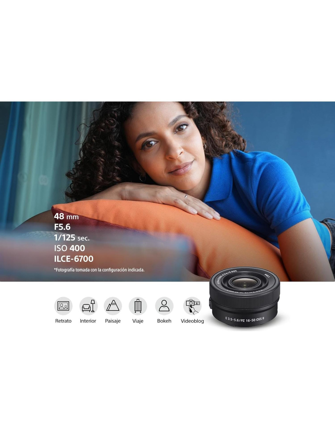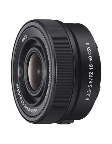 - Diseñada para sensores de cámaras sin espejo APS-C, la lente E PZ 16-50mm f/3.5-5.6 OSS II de Sony ofrece un ángulo de zoom equivalente de fotograma completo versátil de 24-75mm.