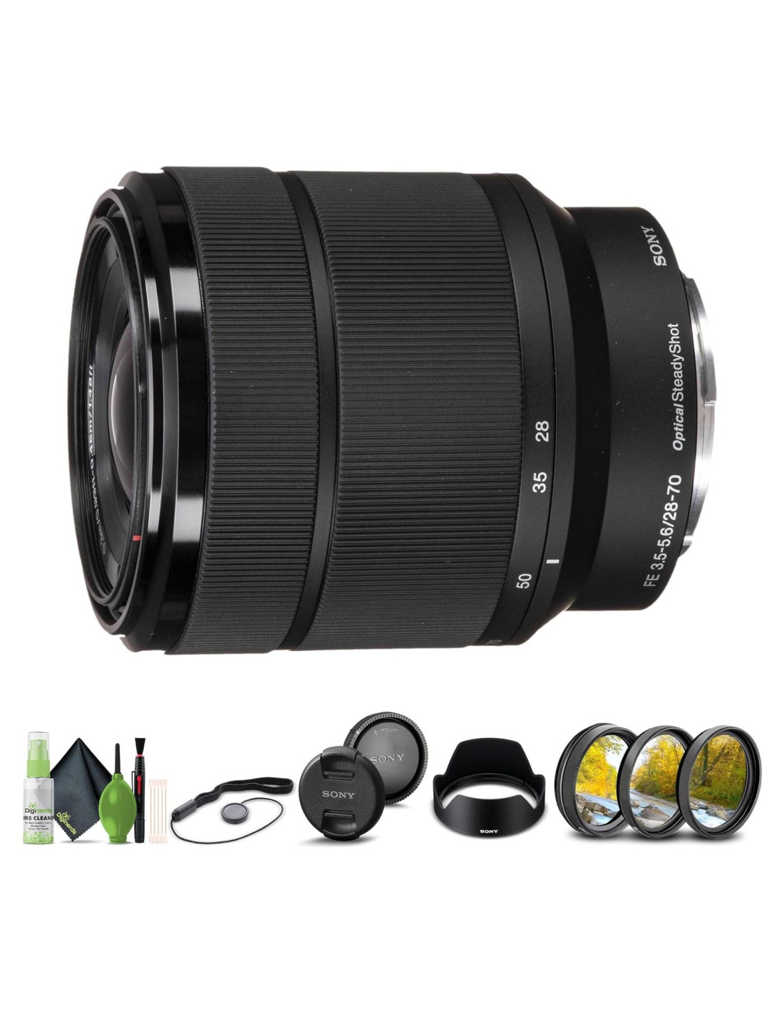 - SONY USA AUTORIZADO - Incluye garantía completa de SONY USA. Artículos del paquete incluyen: Lente Sony FE 28-70mm f/3.5-5.6 OSS, Kit de filtros de 55mm en 3 piezas, Sujetador de tapa de lente, 1 x Kit de limpieza