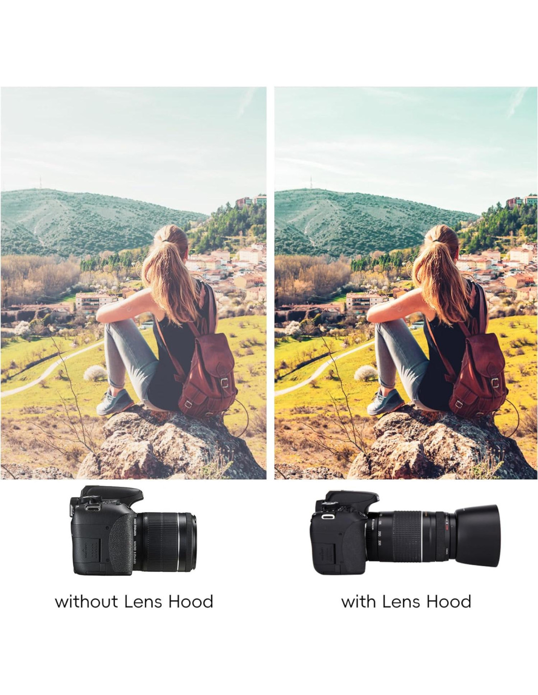 - Minimiza el destello y el fantasma al bloquear la luz errante, también permite el uso de tapas de lente y filtros originales de 58mm.
