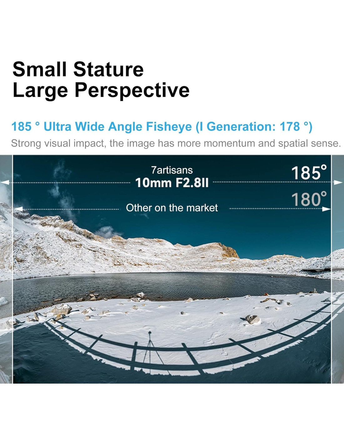 - 4. Más Amplia que el Gran Angular: la lente 7artisans 10mm F2.8 II puede corregir distorsiones a través de archivos de configuración y corrección en postproducción, resultando en un rango de imágenes más amplio que las lentes ultra gran angular.