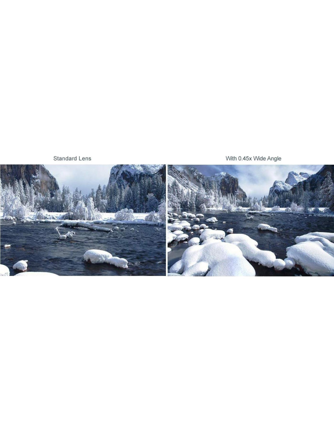 - Este lente de Alta Definición Multicapa 0.5x (0.45x Real) es un convertidor gran angular de grado profesional que aumenta el ángulo de visión en más del 100%, permitiendo que la cámara de video o digital tome impresionantes tomas ultra gran angular. Tamaño de rosca de filtro de 67mm.