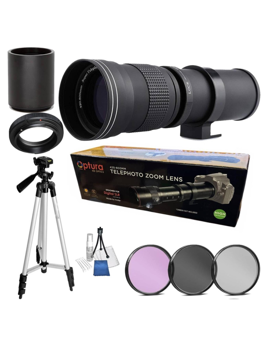 - Este es un lente telefoto de 420-800mm, el lente telefoto convertidor adicional de 2X se convierte en un punto focal de 1600mm. El lente manual solo funciona en modo de enfoque manual sin autofoco. Crea imágenes nítidas de alta calidad, viene con bolsa para lente y tapas protectoras.