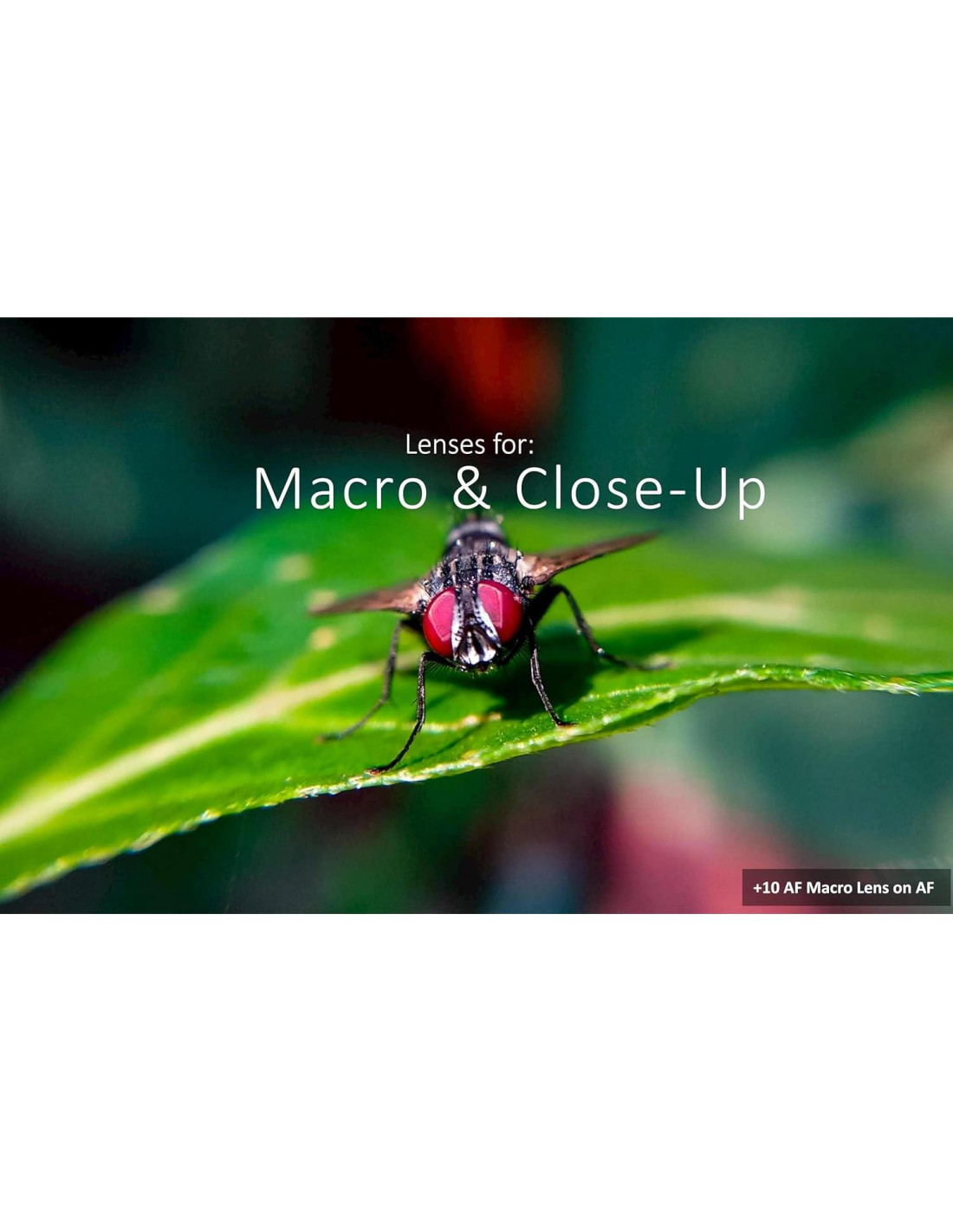 - Desarrollada exclusivamente para lentes contemporáneas DSLR, ofrece una relación de magnificación máxima de 1:10. Permite a los fotógrafos tomar una foto de cerca de sujetos como joyas, flores e insectos. Hecha de vidrio óptico correctivo doble con un diseño apocromático y cuenta con un recubrimiento Nano multicapa. Esto permite una resolución avanzada y colores naturales, con casi ningún borde púrpura o verde. No tiene viñeteo a 24mm en una cámara con sensor APS-C y 35mm en una cámara con sensor de fotograma completo.