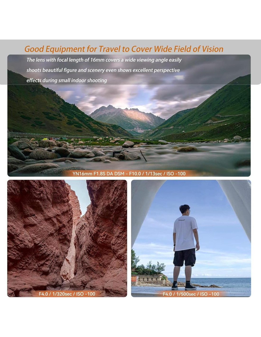 - [Ultra Gran Angular y Gran Apertura para Toma de Imágenes Impresionantes] La lente de cámara YN16mm F1.8 presenta una distancia focal ultra amplia de 16mm y una gran apertura F1.8, perfecta para capturar paisajes expansivos, detalles arquitectónicos y vlogs inmersivos. Con 7 hojas de apertura circulares y 10 lentes de vidrio óptico en 8 grupos, esta lente ofrece una claridad excepcional, un hermoso bokeh y imágenes nítidas incluso en condiciones de poca luz