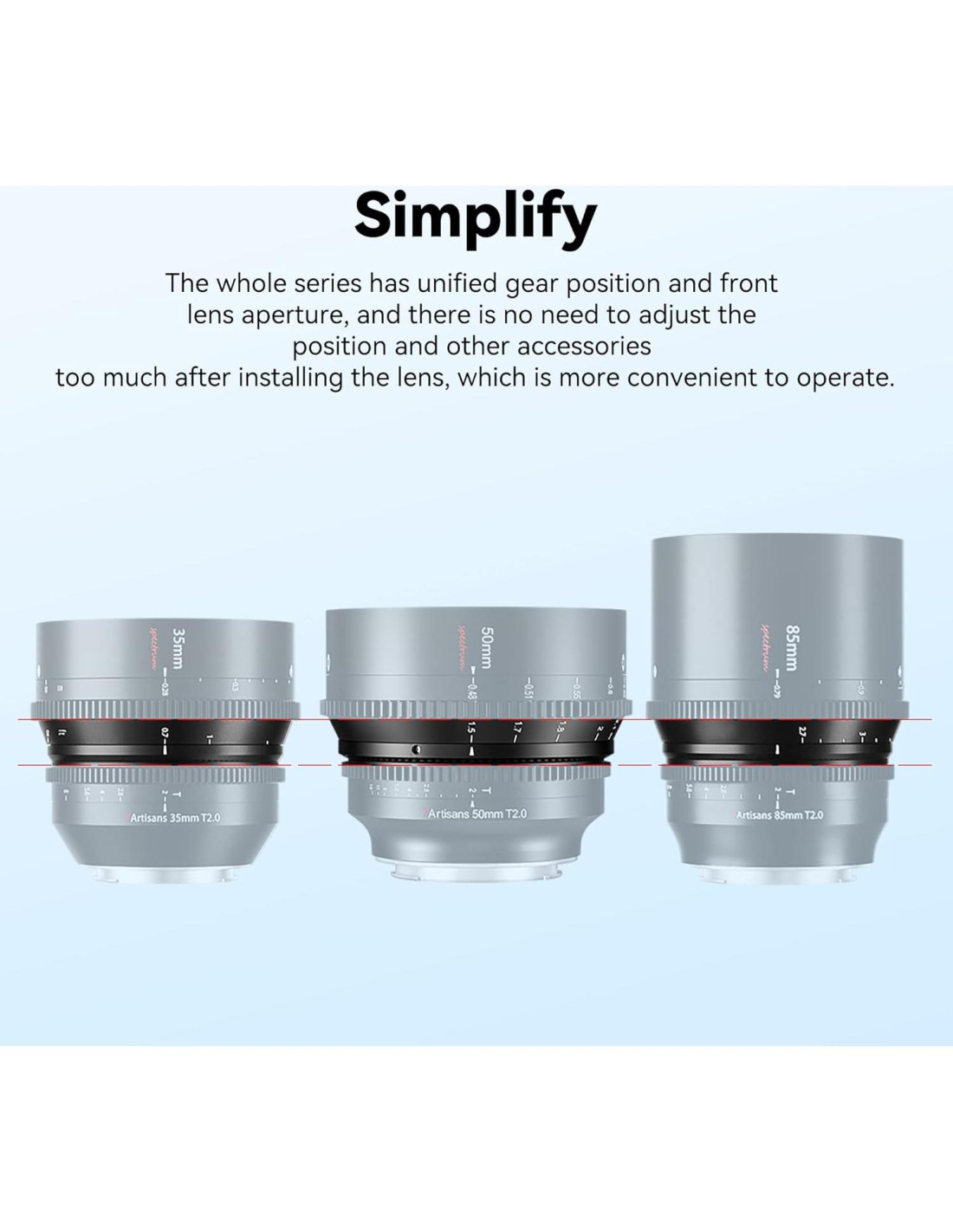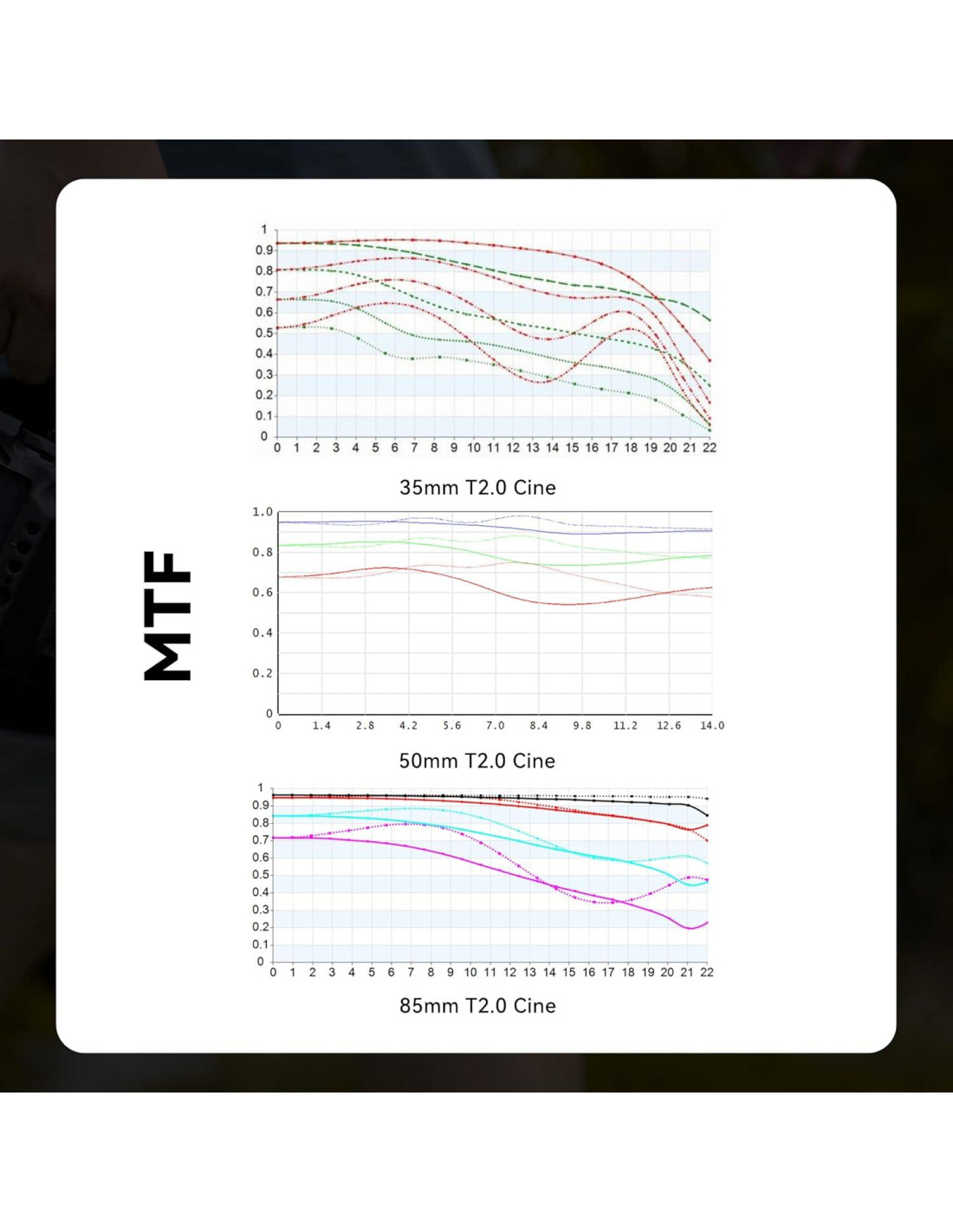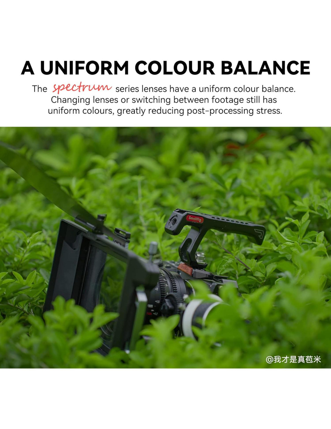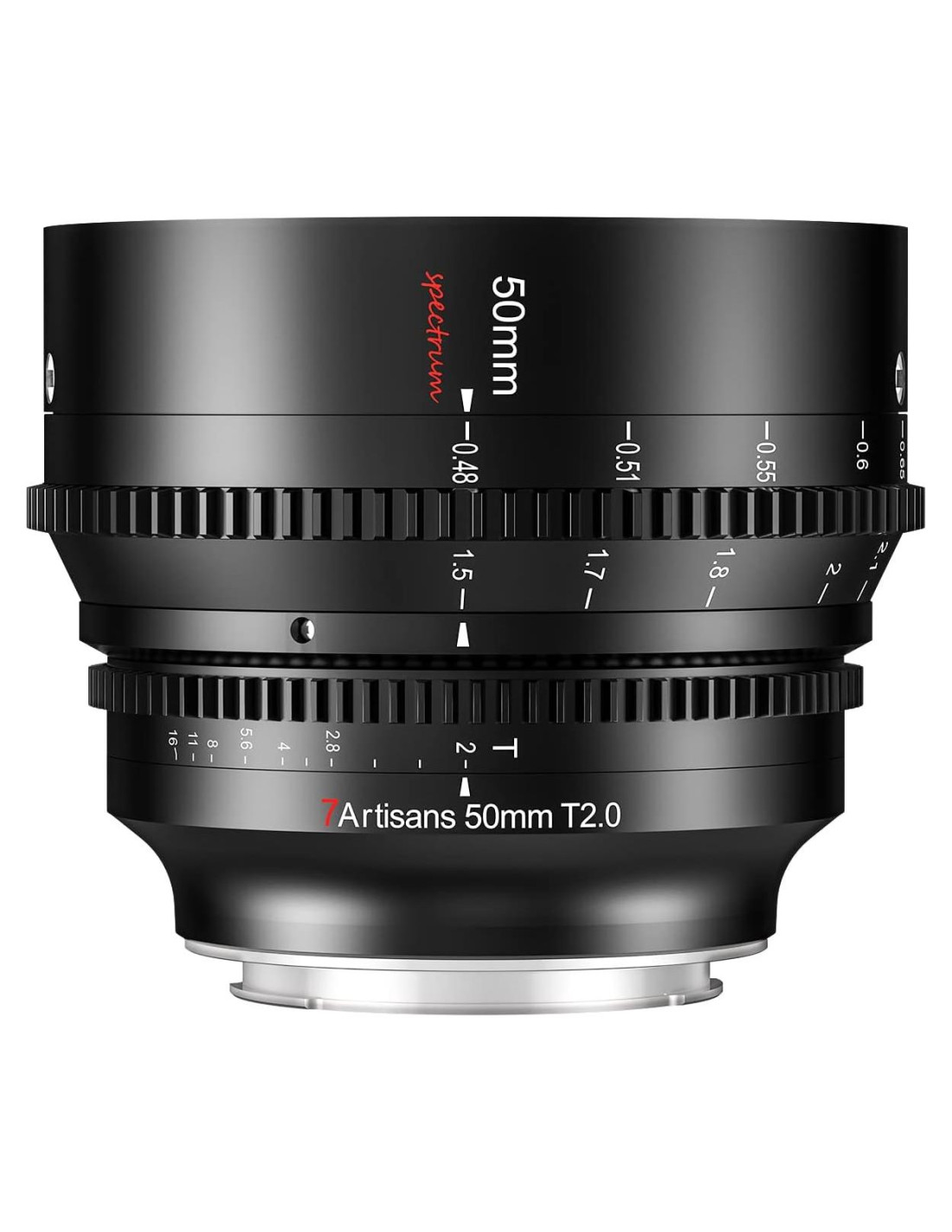 - GRAN APERTURA T2.0 El lente de 50mm de la serie Spectrum ofrece una apertura constante de hasta 2.0 y un mínimo de T16. Puede tomar imágenes brillantes en entornos de poca luz. Las 12 palas de apertura crean una transición de enfoque suave y natural, haciendo que la imagen sea vívida sin ser rígida.