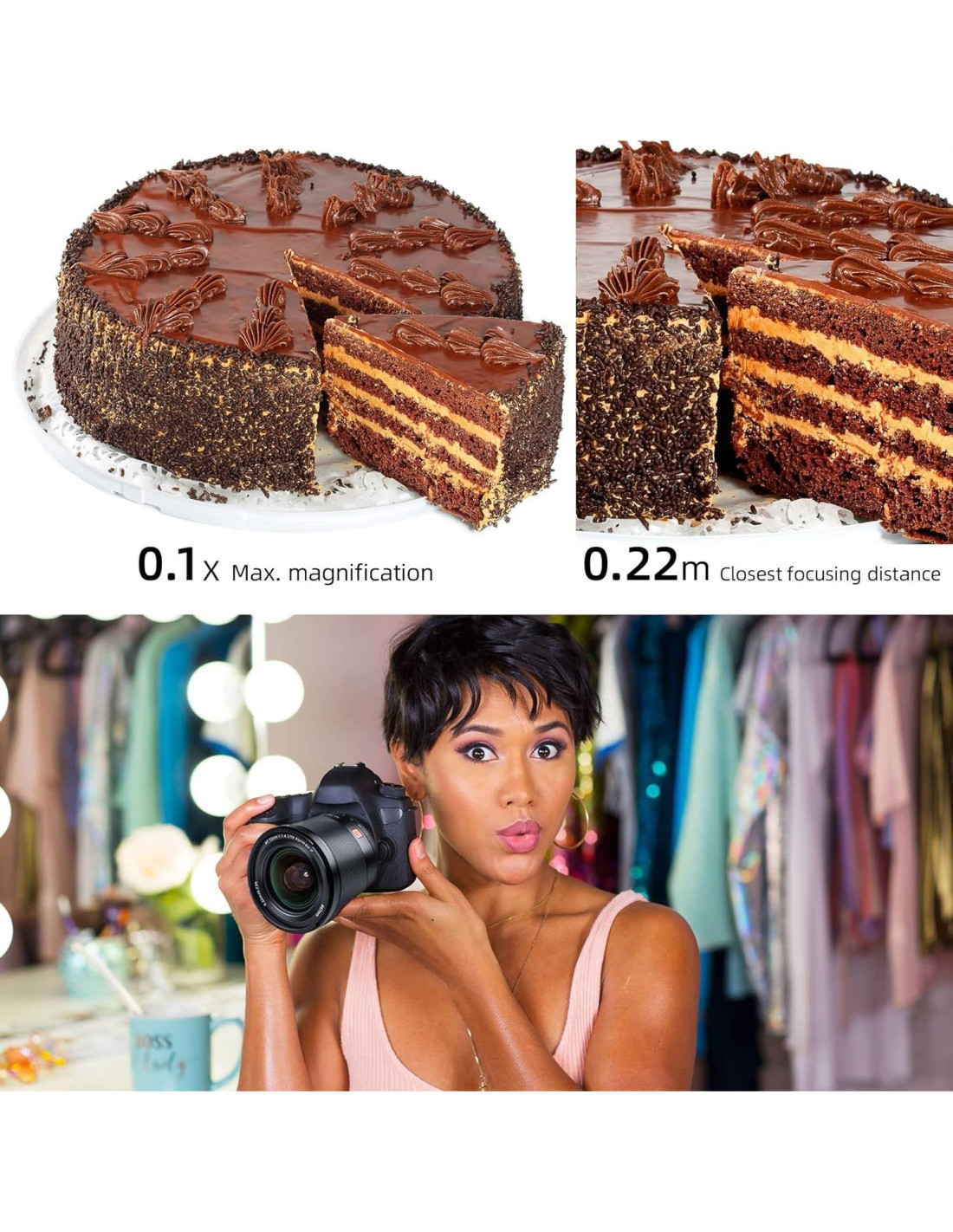 - Con una distancia mínima de enfoque de 8.6 pulgadas (22 cm), hay un inmenso potencial para agregar un aspecto más dinámico a tus imágenes simplemente moviendo tu cámara más cerca y más lejos de tu sujeto.