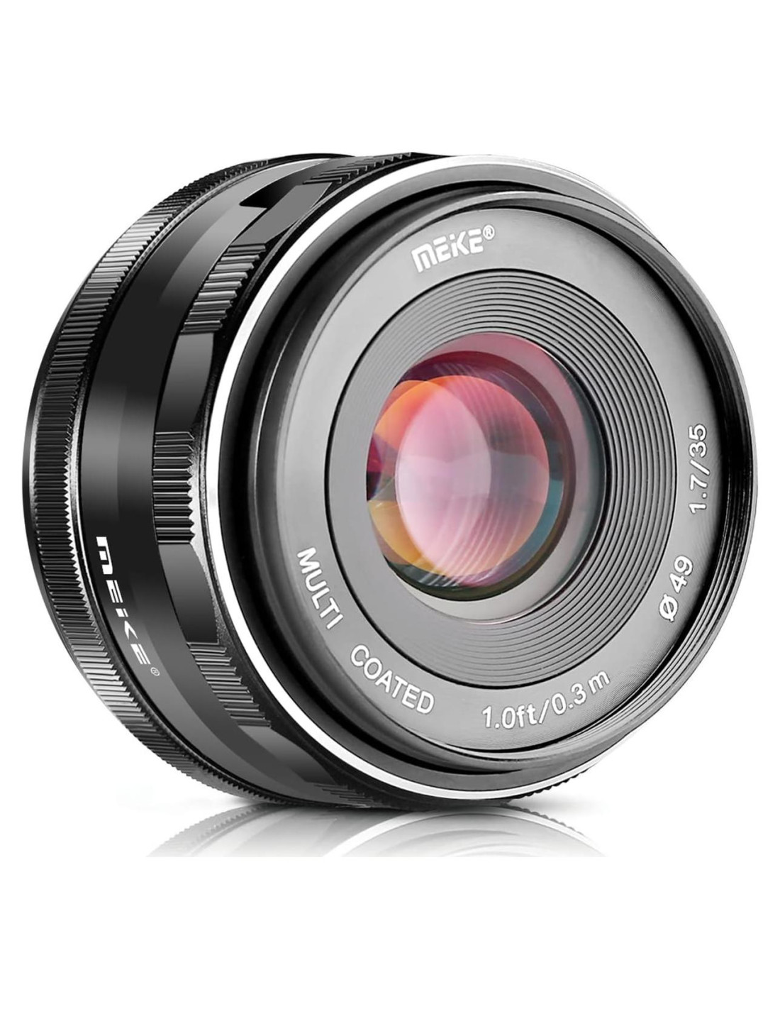 - Con una apertura amplia de f/1.7, la lente puede ser utilizada en interiores, de noche o en entornos oscuros