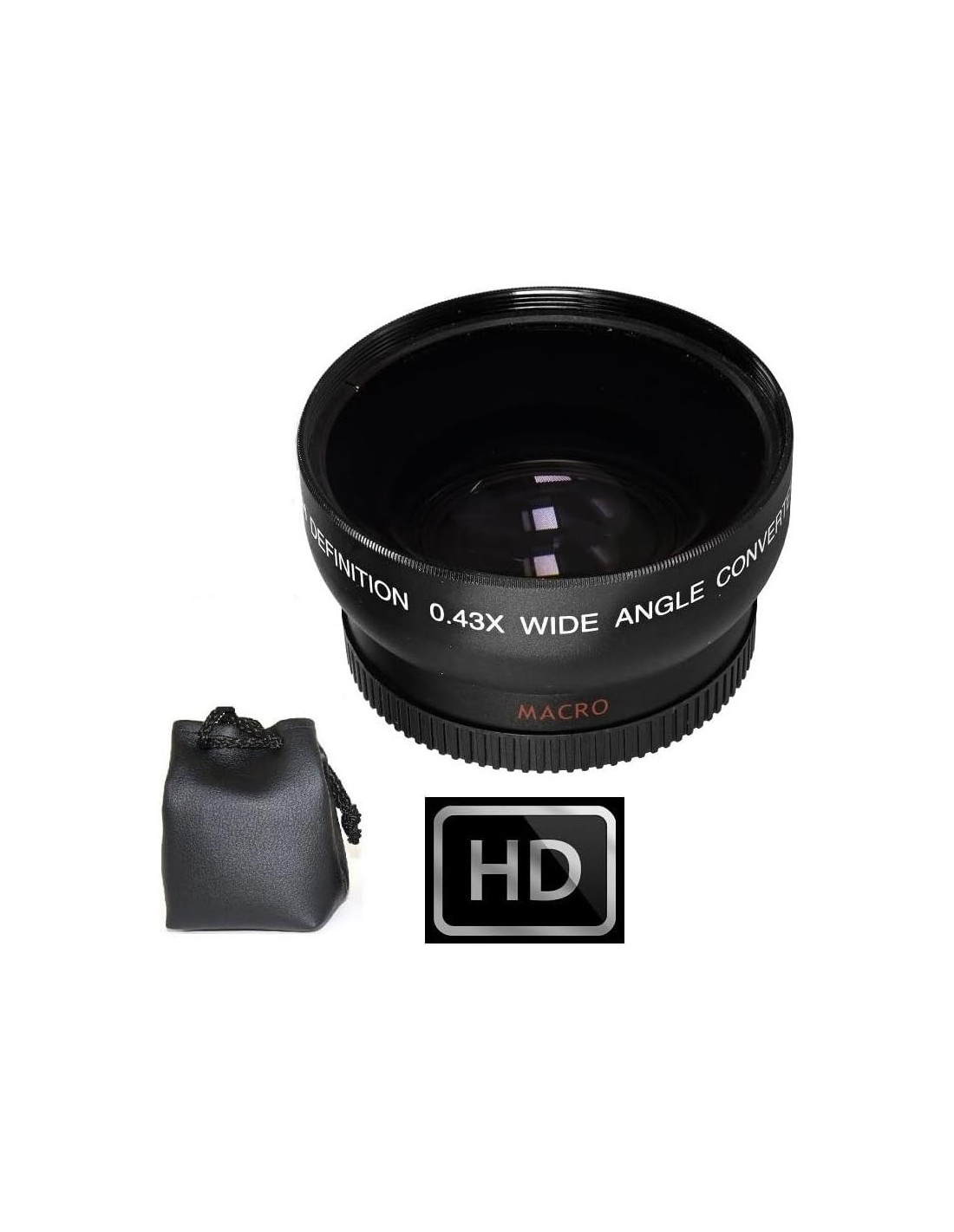 El paquete incluye: Lente Gran Angular HD 0.43x con Macro, tapa frontal de lente, tapa trasera de lente, adaptador de anillo, bolsa de transporte, especificaciones/tarjeta de garantía. Descripción del producto: Alta definición profesional: El lente PHD reduce el destello de vidrio y el efecto fantasma causado por reflejos. Marco de elemento especial: El marco de aluminio mate especial reduce los reflejos y optimiza la fotografía. Vidrio de borde premium: El vidrio de borde de alta calidad reduce la reflexión de luz alrededor del borde del lente. Compatible con infrarrojos: Para grabación de alta resolución de día y de noche. Compacto y ligero: Se ajustará perfectamente a tu cámara. A simple vista: Óptica de titanio, recubrimiento múltiple digital, construcción de alta resistencia.