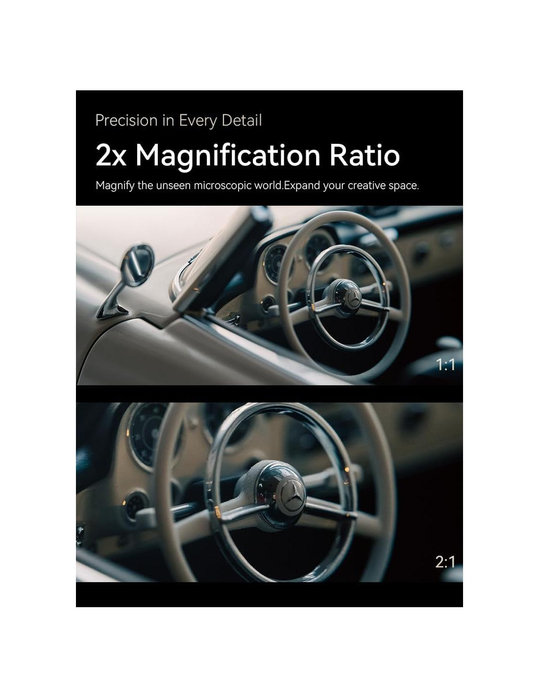 - Alta Resolución con 2x Magnificación: Con una magnificación de 2x y un rendimiento de alta resolución, la imagen es nítida y delicada, los colores son puros y transparentes, y la transición entre el enfoque y el desenfoque es suave y natural, creando un festín visual con capas distintas y textura completa, haciendo que cada detalle esté lleno de sentido artístico.