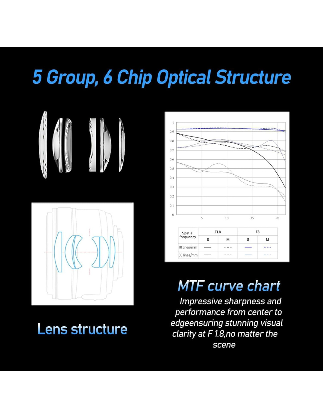 - [Estructura de Lente Excelente] Estructura óptica de 6 elementos en 5 grupos, lente con recubrimiento nano de alta definición reduce la pérdida de luz y suprime el deslumbramiento y el efecto fantasma, esto garantiza que cada toma que realices sea nítida, clara y sin distorsiones