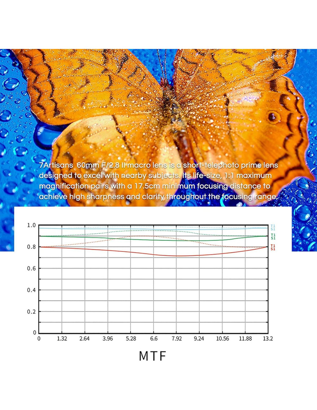 - [Distancia mínima de enfoque 0.175m] : Adecuada para retratos, naturaleza muerta, flores, insectos y otras criaturas pequeñas, fotografía de paisajes y grabación de Vlog.