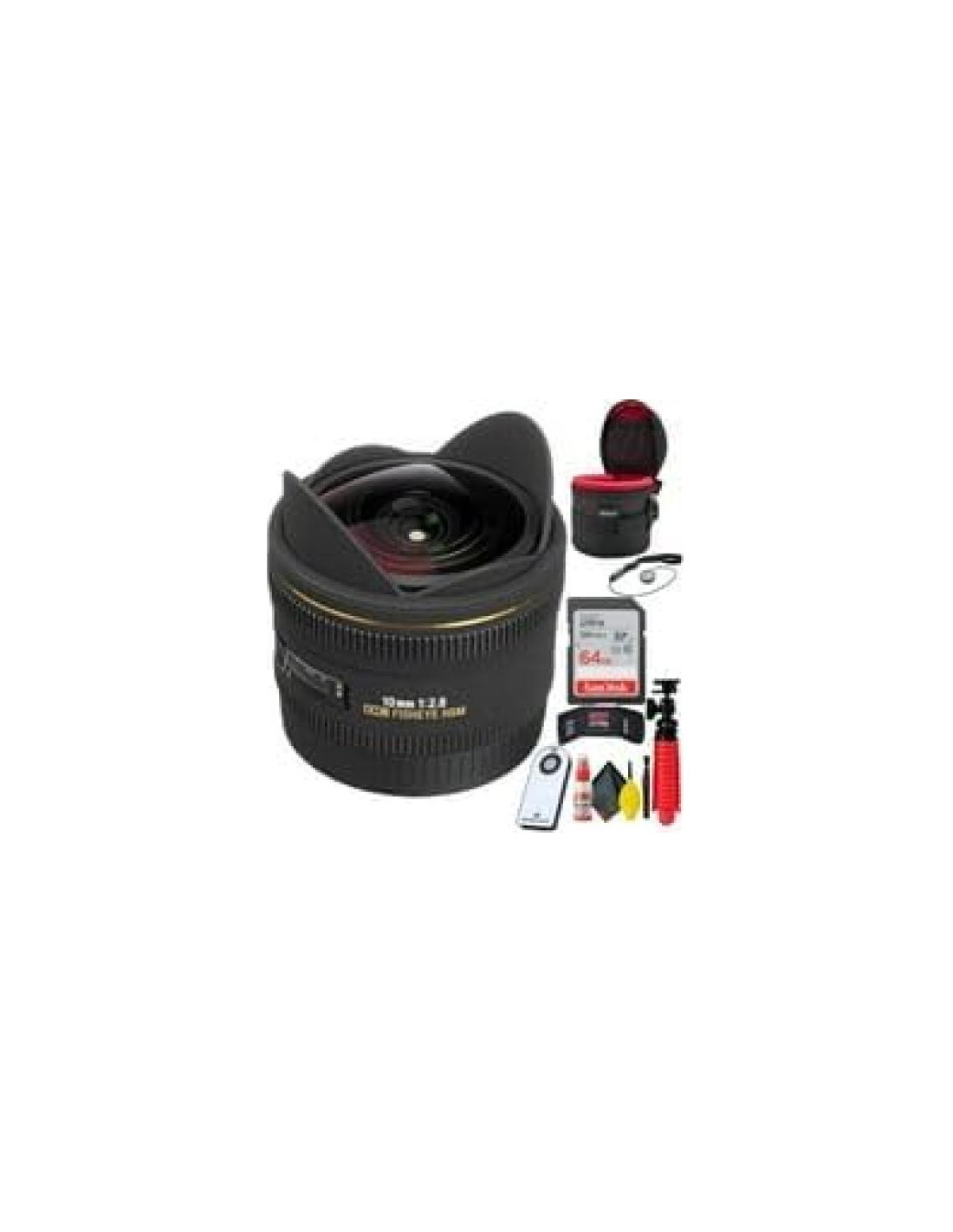 - Artículos del paquete incluyen: 1 x Sigma 10mm f/2.8 EX DC HSM Lente Ojo de Pez para Cámara Digital Sigma + 1 x 64GB Tarjeta SD + 1 x Tapa de Lente + 1 x Funda de Lente + 1 x Cartera de Tarjeta de Memoria + 1 x Trípode + 1 x Disparador Remoto Inalámbrico + 1 x kit de limpieza