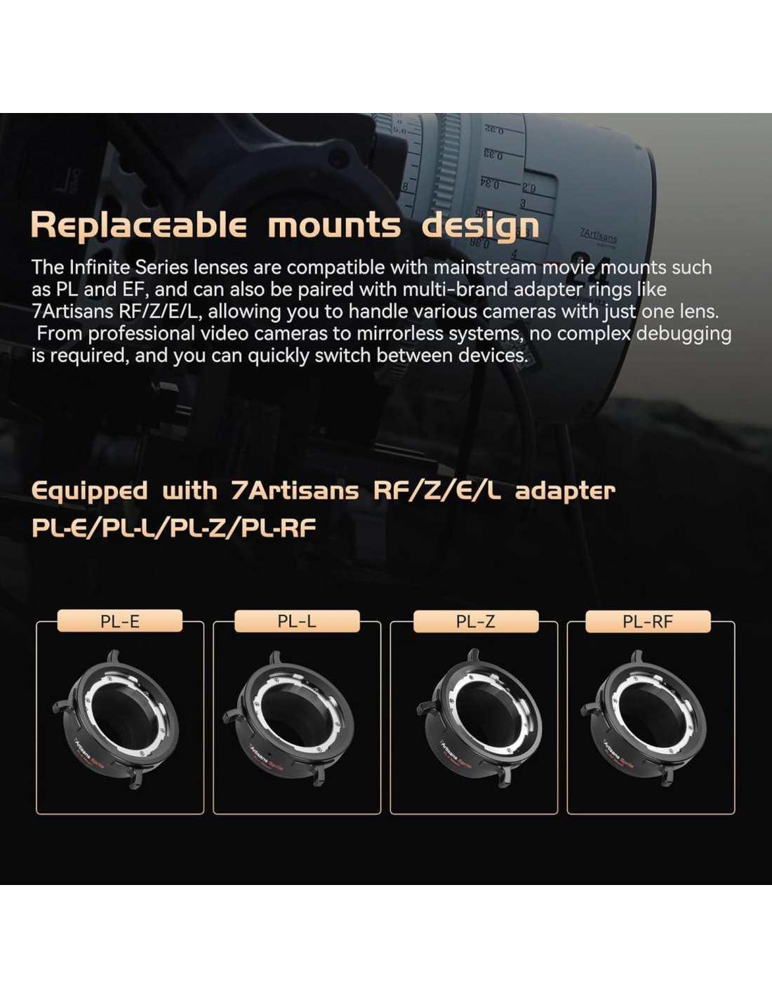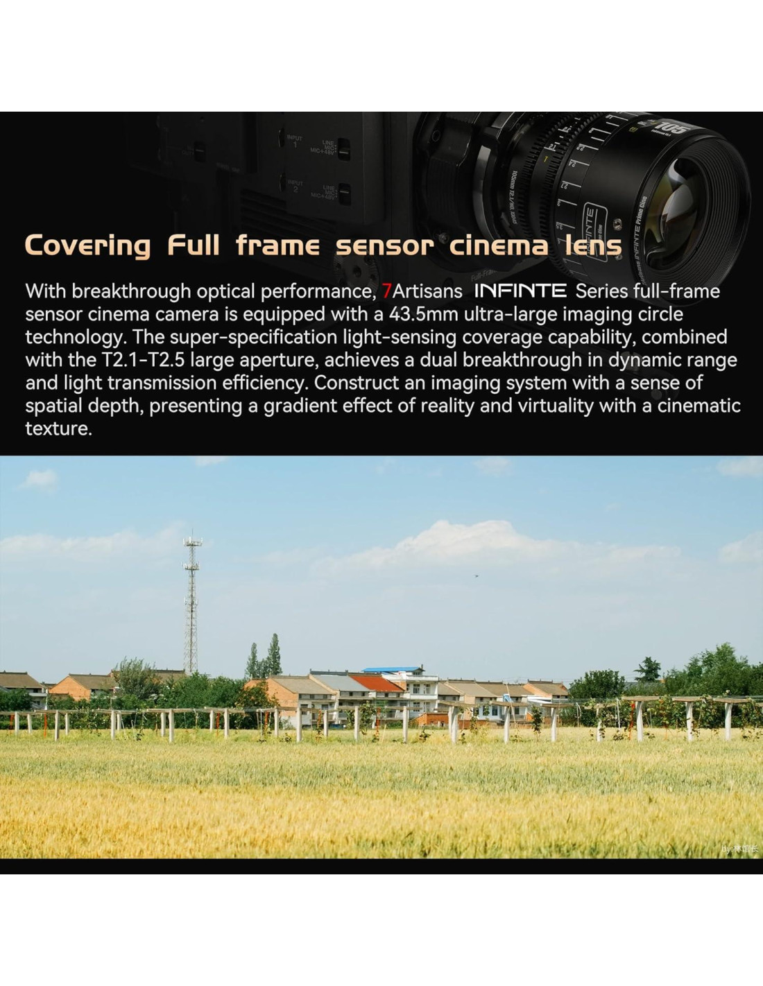- Cobertura de Fotograma Completo: La lente cine de la serie INFINTE de 7artisans está diseñada para producción cinematográfica profesional, soportando un círculo de imagen máximo de 43.5mm para cobertura de sensor de fotograma completo. Altamente compatible con las principales cámaras de cine, asegura un cambio sin problemas entre plataformas. Equipado con engranajes de enfoque estándar, se integra sin problemas en varios entornos de producción, ideal para cineastas profesionales y equipos de filmación.