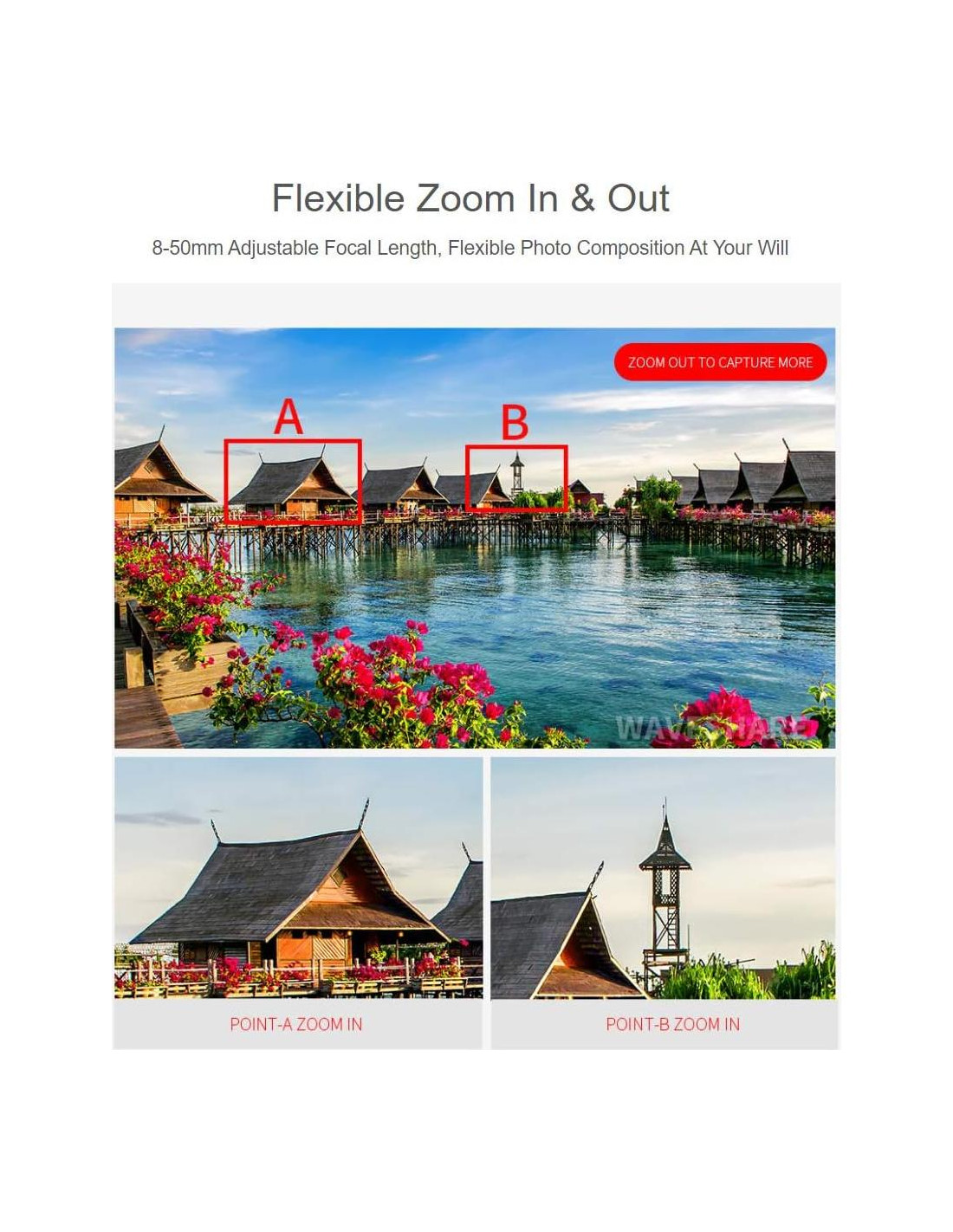 - Longitud Focal Ajustable 8-50mm, Composición Fotográfica Flexible a Tu Gusto