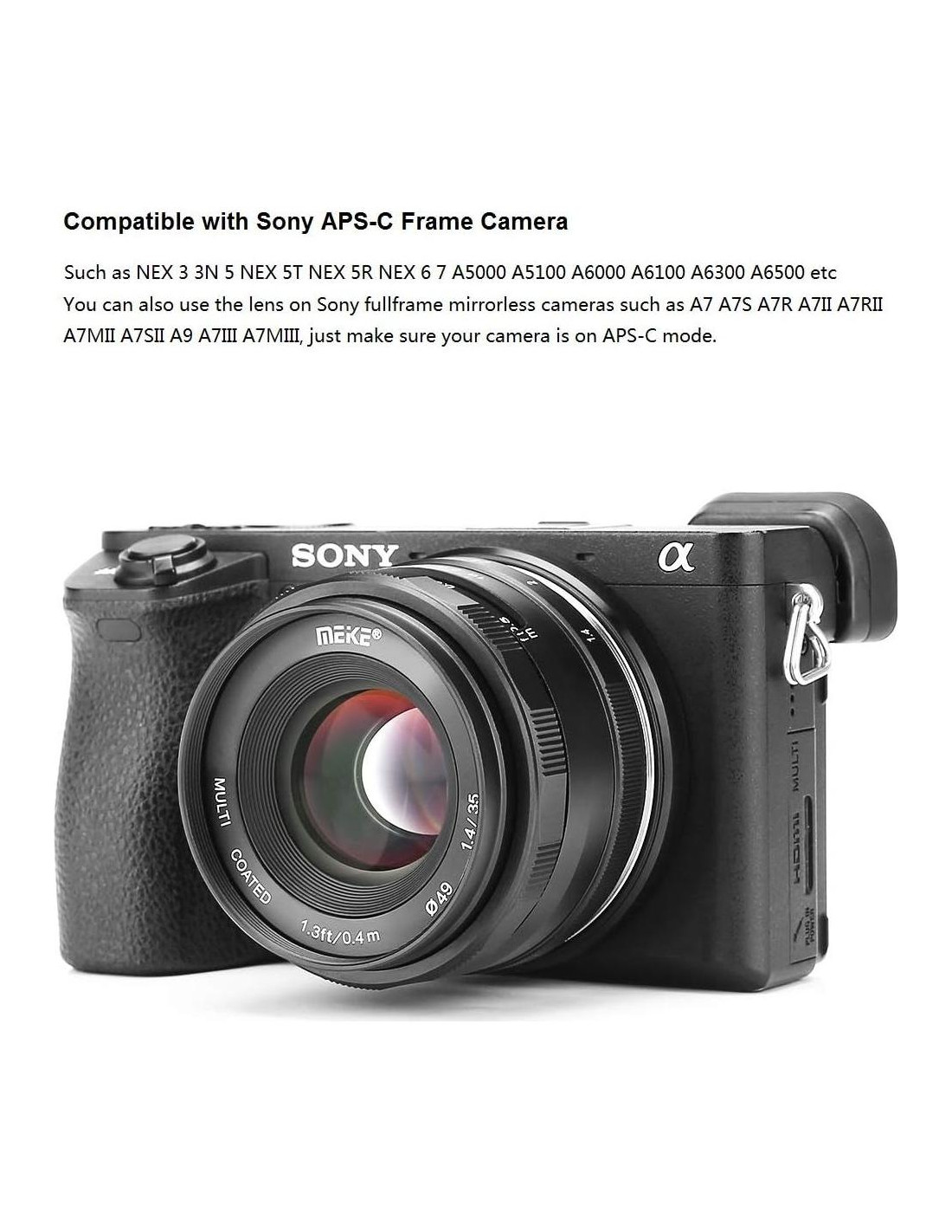 - Compatible con cámaras sin espejo de marco APS-C de Sony como NEX 3 3N 5 NEX 5T NEX 5R NEX 6 7 A5000 A5100 A6000 A6100 A6300 A6500