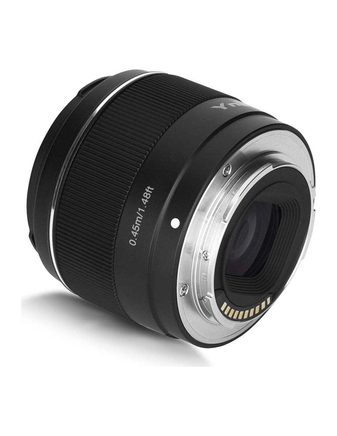 - Montura E y Marco APS-C YN50mm F1.8S DA DSM es la primera lente E-mount APS-C de YONGNUO para cámaras sin espejo Sony. Diseño ligero ideal para cámaras E-mount de marco APS-C, elemento asférico controla la aberración esférica y el coma.