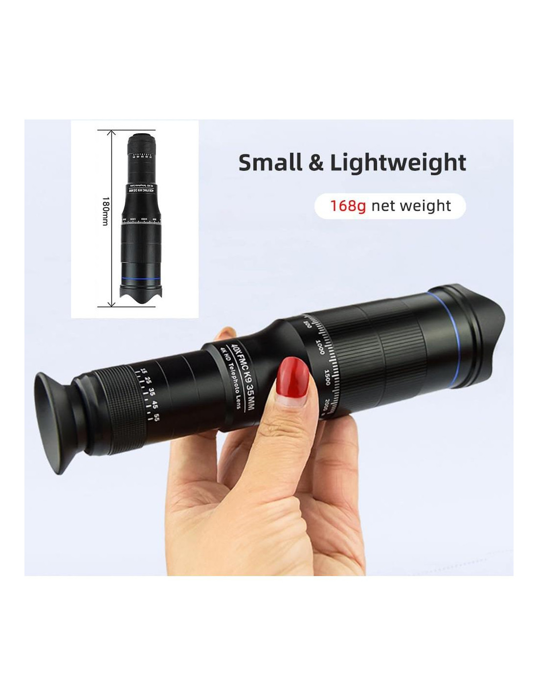 - [Aumento 40x Cristalino] Disfruta de imágenes de alta resolución sin viñeteo utilizando el aumento 40x de esta lente telefoto, gracias al prisma bak4 y lentes recubiertas que ofrecen imágenes nítidas y sin distorsiones.