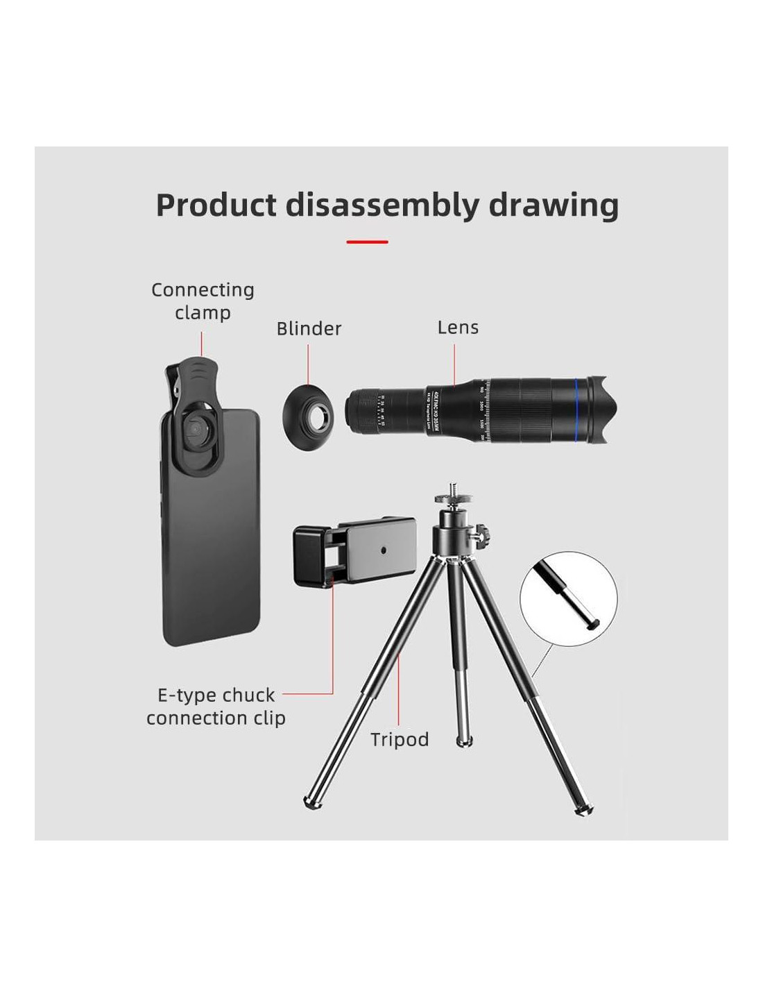 - [Kit de Lente Telefoto Muy Versátil] Este kit de lente telefoto para smartphone está equipado con un clip para lente, trípode mini y soporte universal para teléfono, ideal para observación de vida silvestre, observación de la luna, juegos deportivos, conciertos y más.