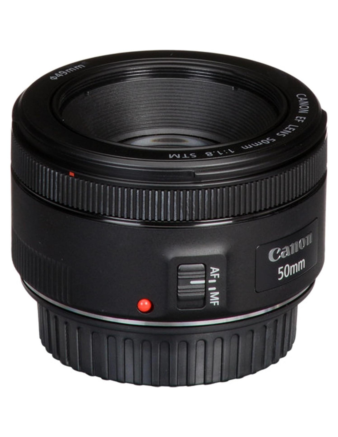 - Canon EF 50mm f/1.8 STM Lente - Lente de montura EF/Formato de fotograma completo, rango de apertura: f/1.8 a f/22, recubrimiento Super Spectra, motor AF de paso STM, diafragma redondeado de 7 hojas