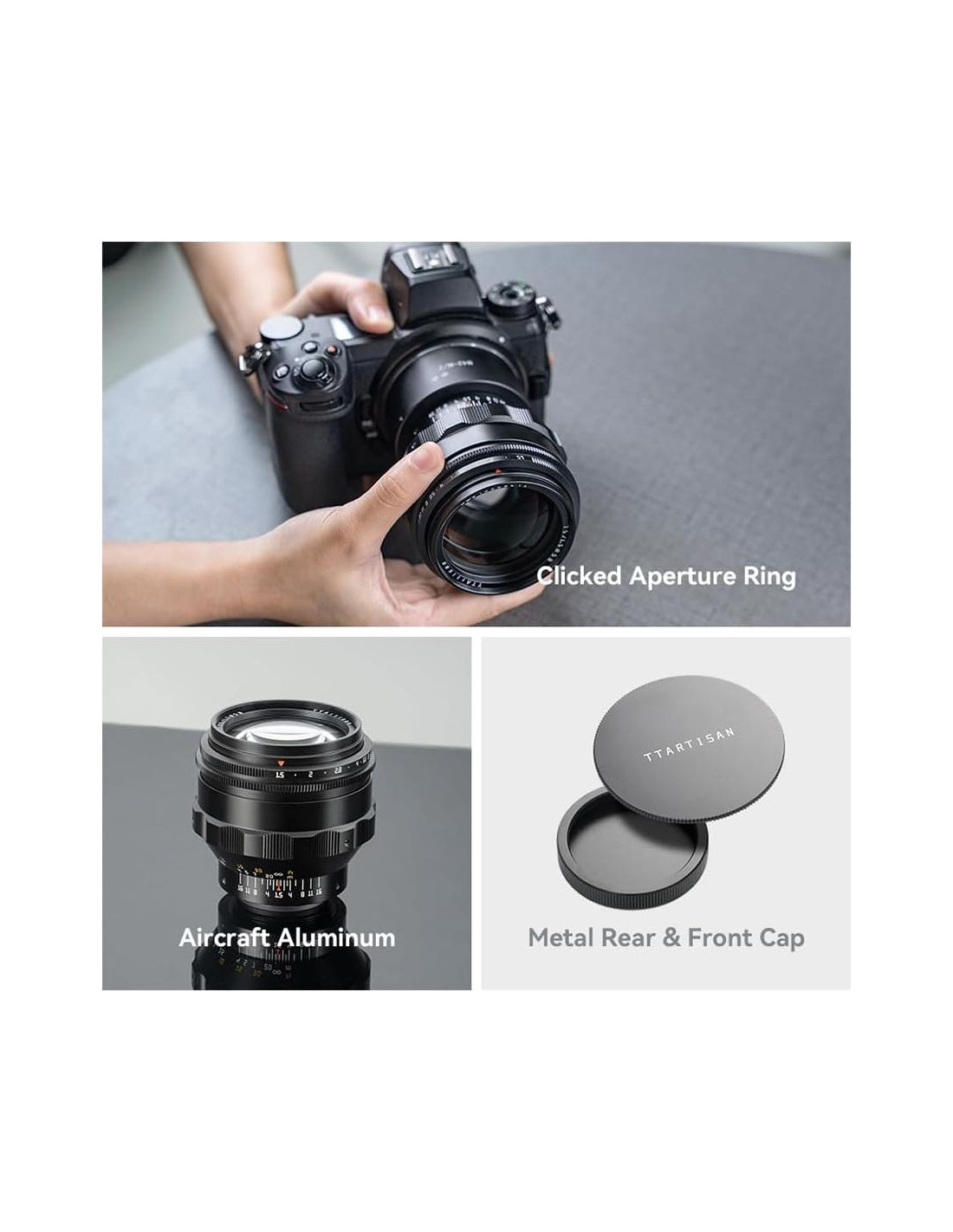 Motor STM silencioso con detección de ojos y rostros para un enfoque rápido y preciso. El ángulo de visión amplio de 92 de la lente de 14mm F3.5 te permite capturar más contenido en varias escenas. La elegancia y la atmósfera de alta gama que aportan los materiales metálicos, cada toque brinda un disfrute táctil. Combinando un diseño clásico con tecnología óptica moderna, TTArtisan 75mm f/1.5 ofrece a los fotógrafos una experiencia de imagen altamente expresiva. Retiene el encanto de las lentes manuales tradicionales mientras mejora la calidad de imagen, creando una capa única de luz y sombra que evoca el encanto clásico de las lentes vintage. TTArtisan 75mm f/1.5 permite a los fotógrafos tener un control más preciso sobre el punto de enfoque. Cuando se utiliza en cámaras de formato medio, el leve viñeteado hace que el trabajo sea más artístico. Bokeh en espiral que hace que el sujeto destaque, como si el fondo estuviera girando alrededor del sujeto. Retiene el encanto elegante de las lentes manuales tradicionales mientras mejora la calidad de imagen, incluso en condiciones de poca luz. Además, la gran apertura ayuda a lograr una profundidad de campo reducida, haciendo que el sujeto destaque y creando un efecto visual único. La lente presenta un diseño de montura M42 con una rosca de tornillo precisa, ofreciendo amplia compatibilidad. Su diseño óptico especial crea un bokeh suave y en espiral que hace que el sujeto destaque, como si el fondo estuviera girando alrededor del sujeto. Los usuarios pueden adaptar fácilmente varios modelos de cámaras utilizando un adaptador de montura. Puedes usar un destornillador Torx T5 para aflojar los tornillos, ajustar el cuerpo de la lente para alinear la línea central y luego apretar los tornillos.