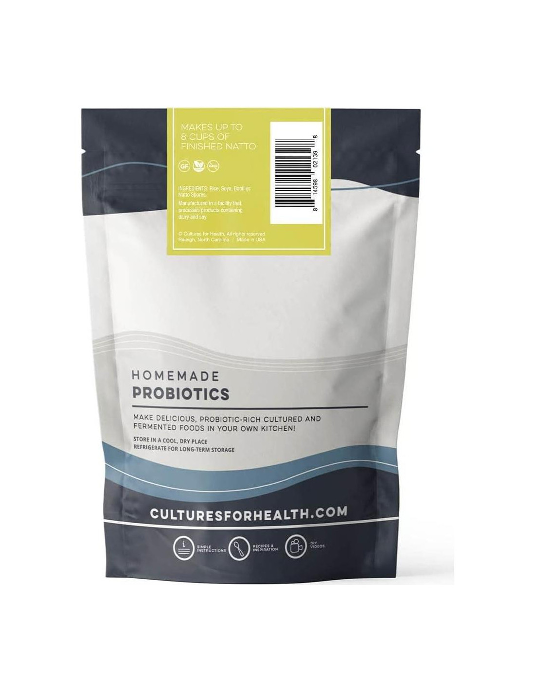 Haz tu propio natto japonés en casa con estas esporas de inicio de Cultures For Health. El natto son frijoles de soja fermentados con muchos beneficios para la salud, como probióticos y enzimas que promueven una buena salud intestinal, así como hierro, vitamina K, fibra, potasio, calcio y más, ganándose el codiciado título de superalimento. El natto posee una textura pegajosa y viscosa, algo así como mozzarella derretida. Su sabor ha sido descrito como un brie envejecido con matices a nuez y tierra, mientras que su olor es mucho más fuerte; sin embargo, es un ingrediente muy adaptable que complementa una variedad de otros sabores. Nuestro iniciador de natto incluye 4 paquetes de esporas de inicio, junto con instrucciones detalladas. Cada paquete rinde 6 tazas de natto a partir de solo 2 tazas de frijoles, para un total de 24 tazas de natto. Generalmente se hace con frijoles de soja, pero puedes hacer natto usando muchos otros frijoles ricos en proteínas, como frijoles garbanzos, frijoles negros o frijoles adzuki. Este kit de fermentación es un gran regalo para cualquier vegetariano o vegano, aficionado al bricolaje, entusiasta de la cocina, o simplemente para ti mismo. Para toda comida natural que es divertida de hacer y llena de probióticos, Cultures for Health está aquí para ayudarte a comenzar.