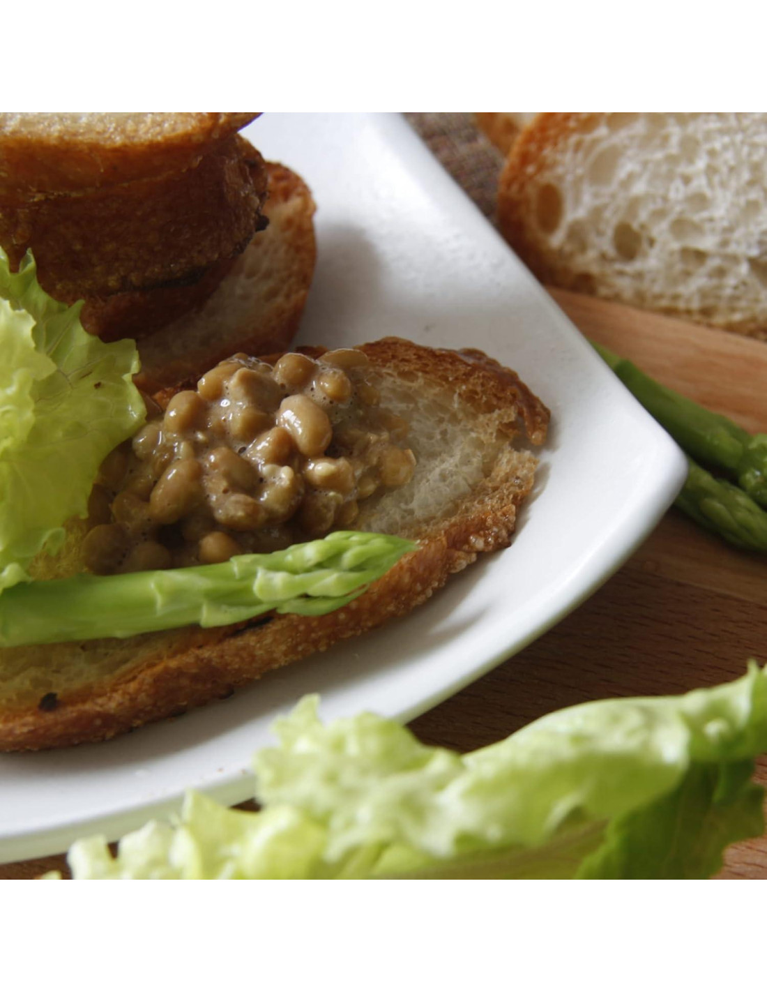 - PROTEÍNA DE FRIJOL: Típicamente hecho con frijoles de soja, pero también se puede hacer con frijoles negros, frijoles garbanzos, frijoles adzuki y más. Ten en cuenta que los frijoles más pequeños funcionan mejor porque el centro se alcanza más fácilmente en el proceso de fermentación.
