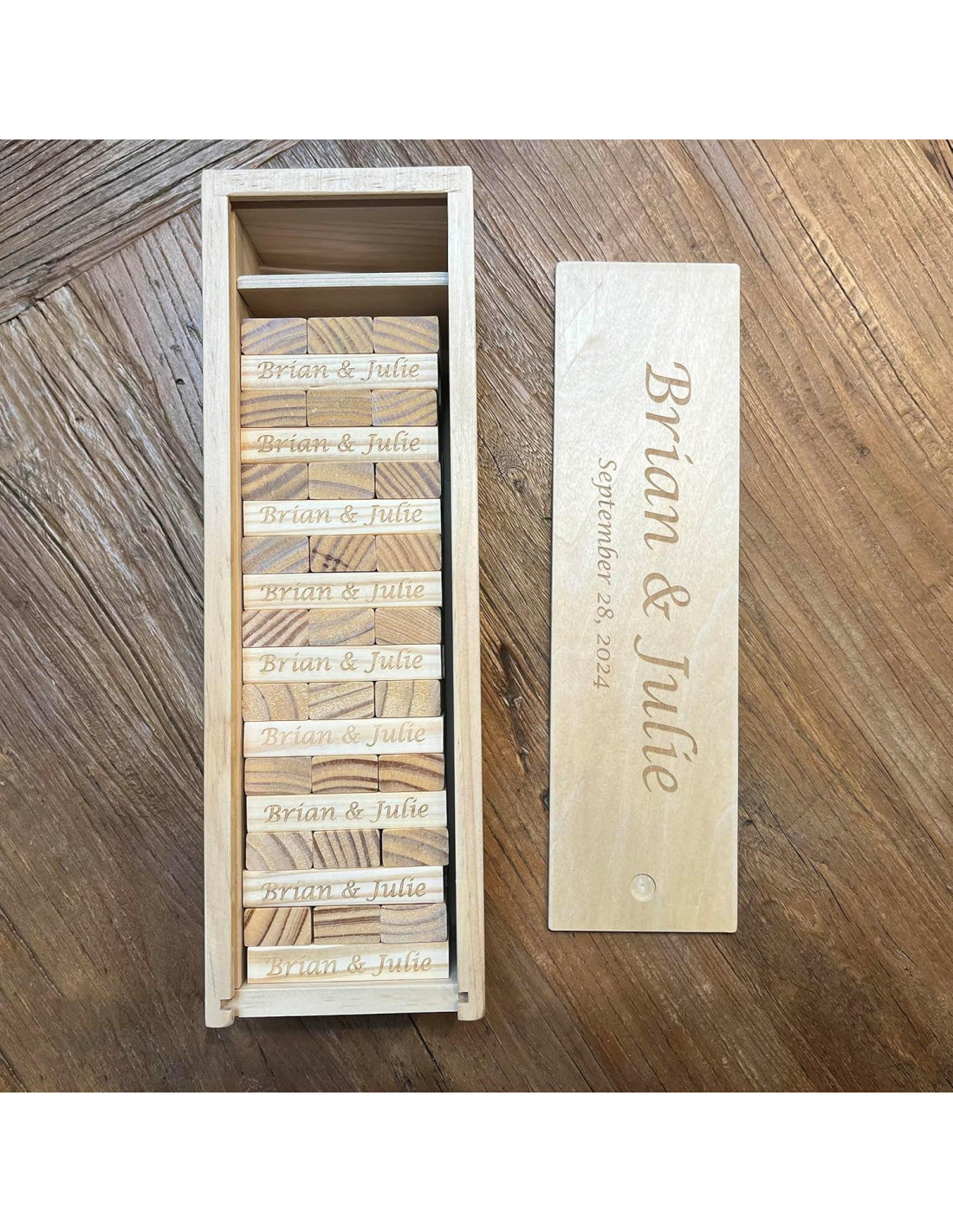 - REGALOS PERSONALIZADOS: Fabricados con madera de alta calidad, cada bloque de juego proporciona amplio espacio para que sus invitados dejen mensajes personales o garabatos. El grabado puede diferir de la imagen en color, profundidad o uniformidad porque la madera contiene variaciones naturales en el grano e imperfecciones como nudos.