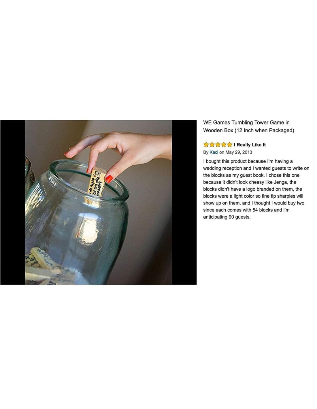 WE Games ha estado perfeccionando juegos de mesa clásicos desde 1977. Estamos ubicados en Los Ángeles, CA y somos orgullosamente un negocio familiar pequeño. Estamos dedicados a ofrecer los juegos de la más alta calidad a usted y su familia. Nuestros juegos de calidad heredada resistirán la prueba del tiempo y serán disfrutados por generaciones. Conjunto de bloques de madera Toppling Timbers personalizado. Grabado láser disponible en bloques y tapa. Normalmente procesamos y enviamos dentro de 2 días hábiles. Enviamos pedidos de gran volumen rápidamente. Podemos grabar logotipos - Por favor, envíenos un mensaje directamente con solicitudes especiales. NOTA: Un gran regalo, recuerdo o favor de fiesta para cualquier evento especial. Úselo como un libro de invitados donde los asistentes firman un bloque o cree su propio juego de fiesta. ¡Un favorito entre los fans! A los clientes les encanta este conjunto porque es el regalo perfecto y una adición única a cualquier evento. Personalícelo a su gusto y vea cómo este simple juego se convertirá en un recuerdo atesorado. Bodas, Baby o Showers de Boda, Graduaciones, Bar y Bat Mitzvahs, Fiestas de Jubilación, Fiestas Corporativas.