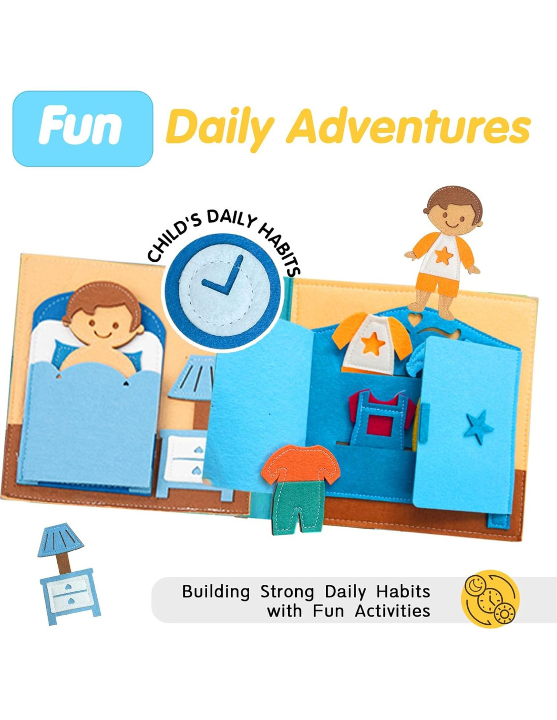 - ILUMINACIÓN DE HABILIDADES DE VIDA DIARIA: Los libros silenciosos para niños contienen 6 escenas de vida, incluyendo levantarse, vestirse, cepillarse los dientes, lavar ropa, cocinar y comer. Los niños pueden entender habilidades básicas de vida en la vida diaria. Cada escena tiene un diseño interactivo, como poner pequeñas prendas para niños y guardar la ropa en el armario, cultivando la independencia de los niños y construyendo confianza en la vida.