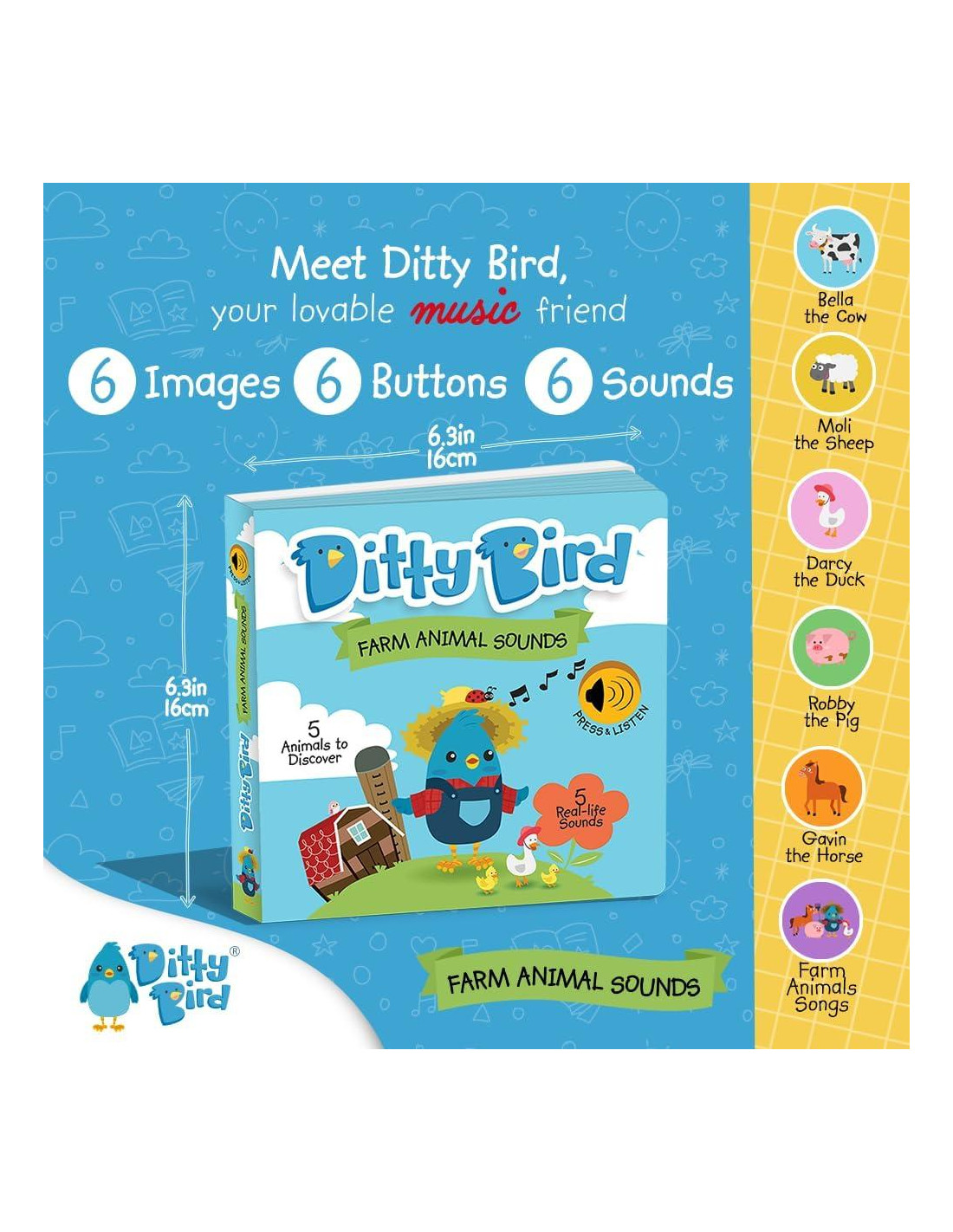 - Listo para divertirse en el granero: ¡Deja que tus hijos se diviertan escuchando y aprendiendo sobre los animales de granja con estos libros Ditty Bird con sonido que presentan 6 diferentes amigos de la granja y los sonidos que hacen! Ya sea que tu pequeño sea fan de la Vaca, Cerdo, Oveja, Caballo o Pato, ¡seguro que amarán estos libros para bebés!
