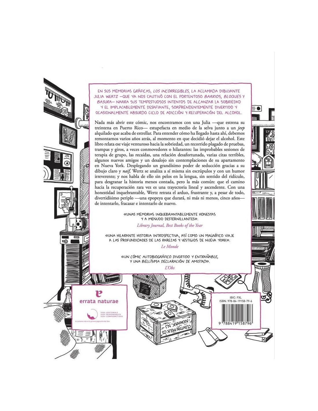 Nada más abrir este cómic, nos encontramos con una Julia que estrena su treintena en Puerto Rico estupefacta en medio de la selva junto a un jeep alquilado que acaba de estrellar. Para entender cómo ha llegado hasta ahí, debemos remontarnos varios años atrás, al momento en que decidió dejar el alcohol. Este libro relata ese viaje venturoso hacia la sobriedad, un recorrido plagado de pruebas, trampas y giros, a veces conmovedores o hilarantes: las improbables sesiones de terapia de grupo, las recaídas, una relación desafortunada, varias citas terribles, algunos nuevos amigos y un desalojo sin contemplaciones de su apartamento en Nueva York. Desplegando un grandísimo poder de seducción gracias a su dibujo claro y naif, Wertz se analiza a sí misma sin escrúpulos y con un humor irreverente; y nos habla de ello sin pelos en la lengua, sin sentido del ridículo, para desgranar la historia menos contada, pero la más común: que el camino hacia la recuperación rara vez es una trayectoria lineal y ascendente. Con una honestidad inquebrantable, Wertz retrata el arduo, frustrante y, a pesar de todo, divertidísimo periplo una epopeya que durará, ni más ni menos, cinco años de intentarlo, fracasar e intentarlo de nuevo.