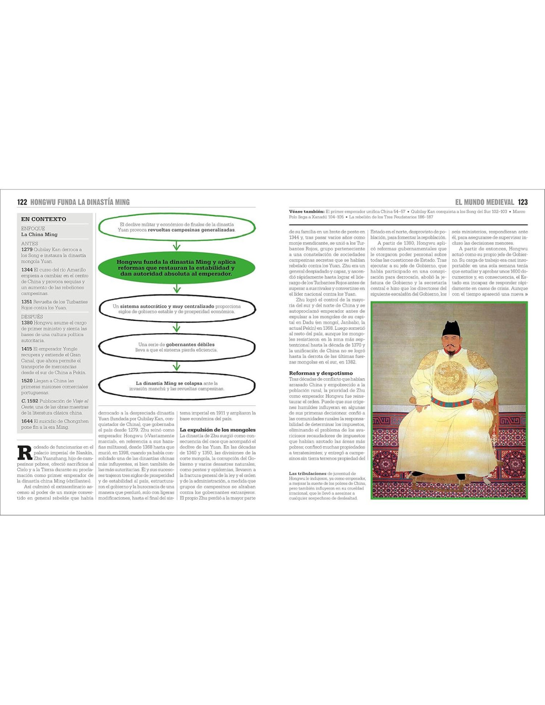 Grandes ideas, explicaciones sencillas ¿Qué permitió el surgimiento de la democracia en la antigua Grecia? ¿Cómo conquistó España América Central y del Sur? ¿Qué provocó la caída del Muro de Berlín? Este libro responde a estas y otras muchas cuestiones revisando las civilizaciones, las revoluciones y los avances tecnológicos que han hecho nuestro mundo irreconocible para nuestros ancestros. Con un lenguaje claro, El libro de la historia ofrece breves y sencillas explicaciones de las ideas que subyacen a los eventos que han configurado nuestro mundo, esquemas que simplifican conceptos complejos e ingeniosas ilustraciones que juegan con nuestras ideas sobre el pasado. Tanto el nuevo en la materia, como el ávido estudiante o el apasionado de la historia, hallarán en este libro mucha información interesante. Su historia, explicada de manera sencilla. Este libro esbozará grandes ideas, temas y eventos de la historia mundial, presentando información clave en un formato fácil de seguir. Aquí aprenderás sobre los primeros humanos, los imperios de la historia antigua, los viajes de descubrimiento hasta el tumultuoso nacimiento del nacionalismo, y la violencia de dos guerras mundiales. Aprende sobre los orígenes de nuestra especie y todas las cosas revolución en El Libro de la historia. El Libro de la historia es una cautivadora introducción a los eventos clave que han dado forma a la sociedad, desde el amanecer de la civilización hasta la cultura moderna de hoy. Aquí descubrirás las historias de eventos históricos importantes y puntos de inflexión, y los líderes, pensadores y héroes involucrados, a través de un texto emocionante y gráficos audaces.