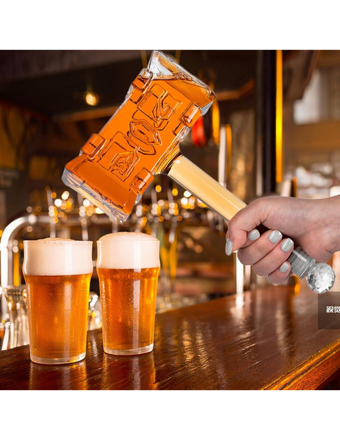 - Decantador de Martillo 3D: Este decantador de martillo 3D es un decantador de licor práctico y elegante que impresionará a cualquier entusiasta del whisky o del vino. Su apariencia elegante tiene un efecto llamativo que puede contrastar con cualquier decoración en la habitación. La botella de vidrio es cómoda de sostener y se destaca sobre una base pesada para estabilidad en superficies planas. Es perfecto para cualquier amante del whisky o del vino que quiera disfrutar de su bebida con estilo.