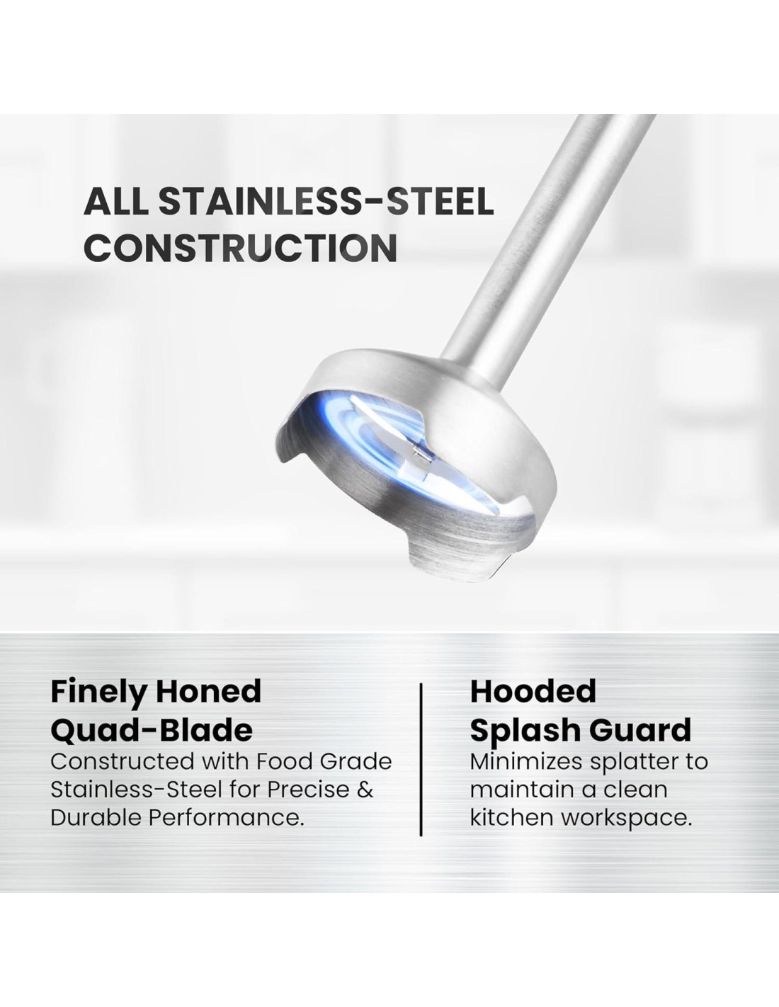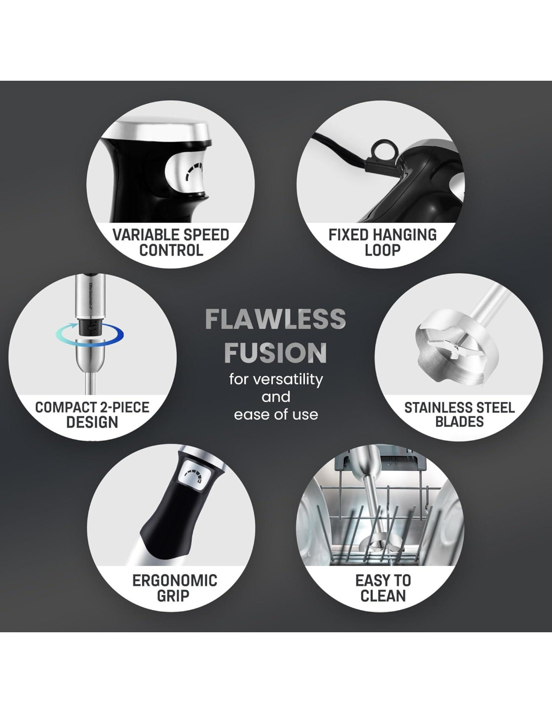 - PORTÁTIL Y COMPACTO: Este potente y versátil mezclador de mano de inmersión cuenta con un motor de 500W con velocidades variables más Turbo y cuchillas de acero inoxidable para resultados de mezcla perfectos dentro o fuera de la cocina.