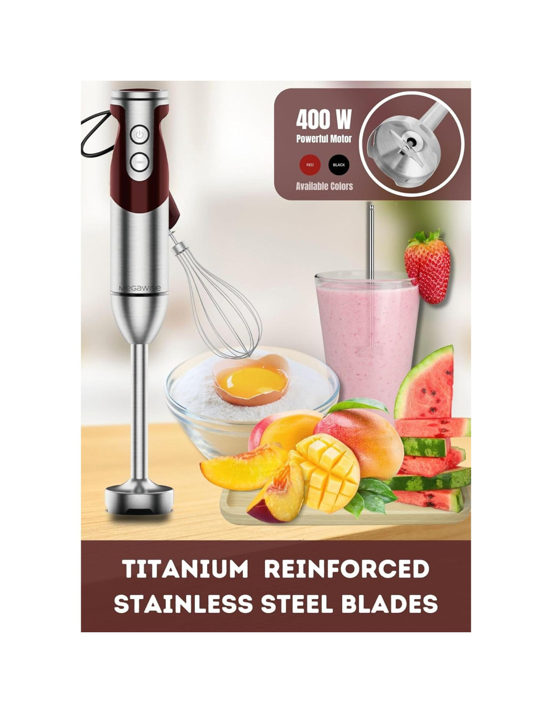 - Motor de Cobre Completo Potente: La batidora de inmersión MegaWise actualizada en 2021 tiene un motor de corriente continua de cobre puro con una potencia de 400W, más potente y silenciosa que la mayoría de las otras batidoras en el mercado para hacer que tu proceso de preparación de alimentos sea rápido y fácil.
