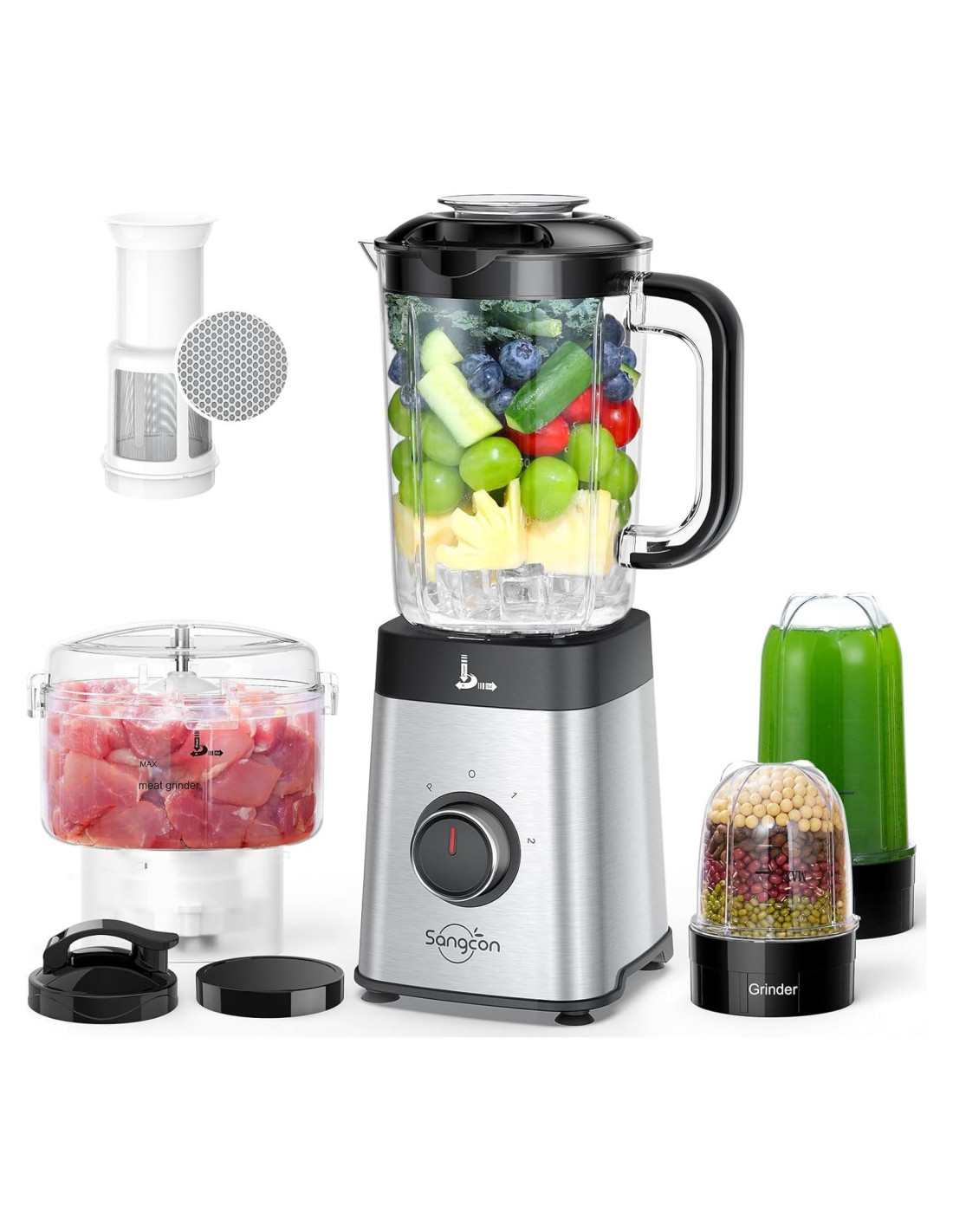 - [Fácil de Usar y Limpiar] La licuadora y procesador de alimentos 5 en 1 de Sangcon está diseñada para un uso y limpieza fáciles. Simplemente agrega ingredientes, selecciona la velocidad y déjala mezclar. Limpiar es muy sencillo con su diseño amigable para el jugo. Desmonta la cuchilla y enjuaga o colócala en el lavavajillas. Sin tazas adicionales que limpiar, disfruta de una mezcla sin complicaciones cada vez. Cuenta con nuestra licuadora y su equipo de servicio al cliente dedicado y garantía de un año para una mezcla confiable y segura.