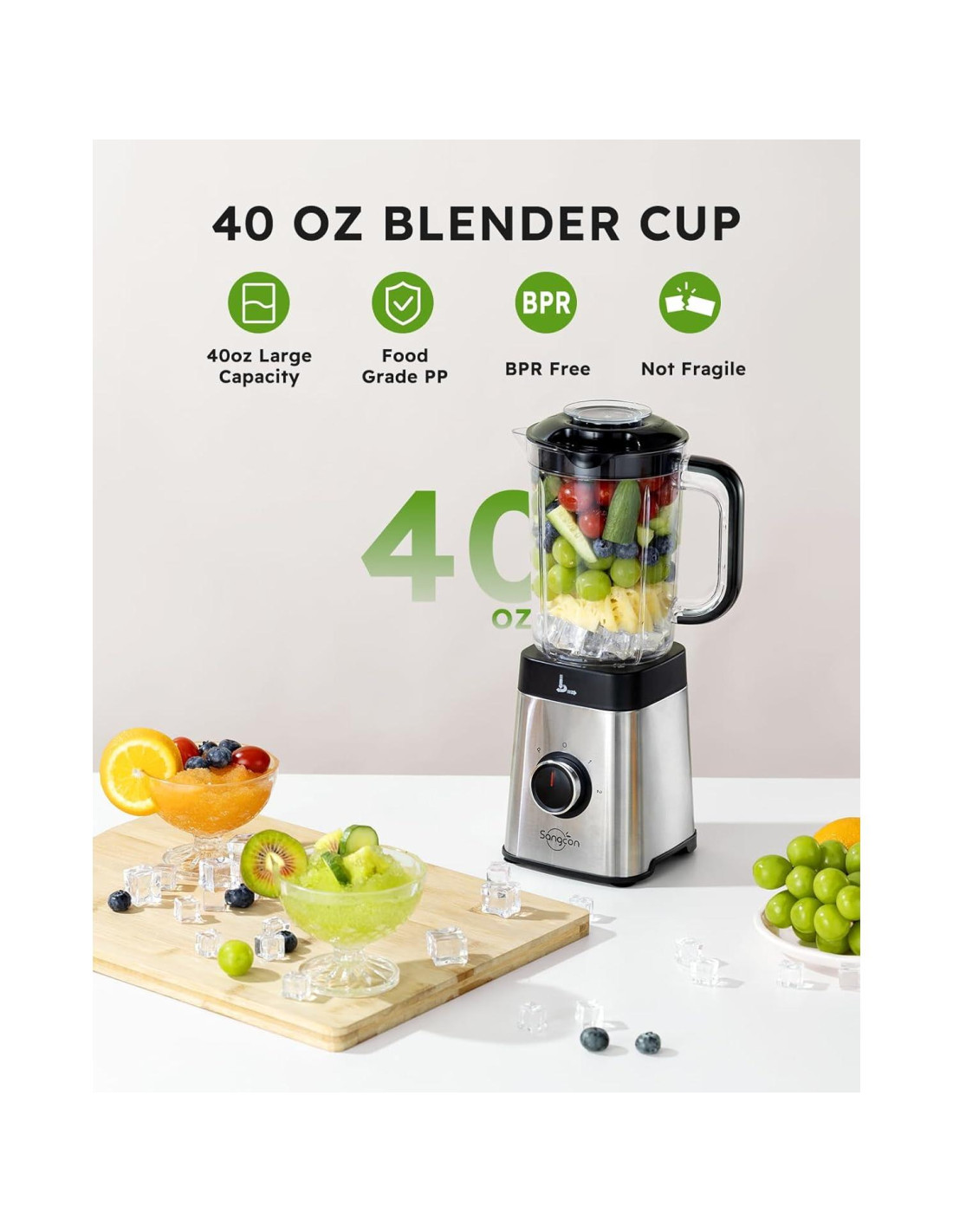 - [Mayor Capacidad, Más Conveniente] Disfruta de la conveniencia de la taza de mezcla de 40 OZ de nuestra licuadora, eliminando la necesidad de múltiples lotes. La tapa sellable de doble propósito y la tapa para beber ofrecen almacenamiento seguro o disfrute sobre la marcha. Ya sea para batidos de proteínas, smoothies o salsas, nuestra licuadora prepara más porciones de una vez, ahorrándote tiempo y esfuerzo.