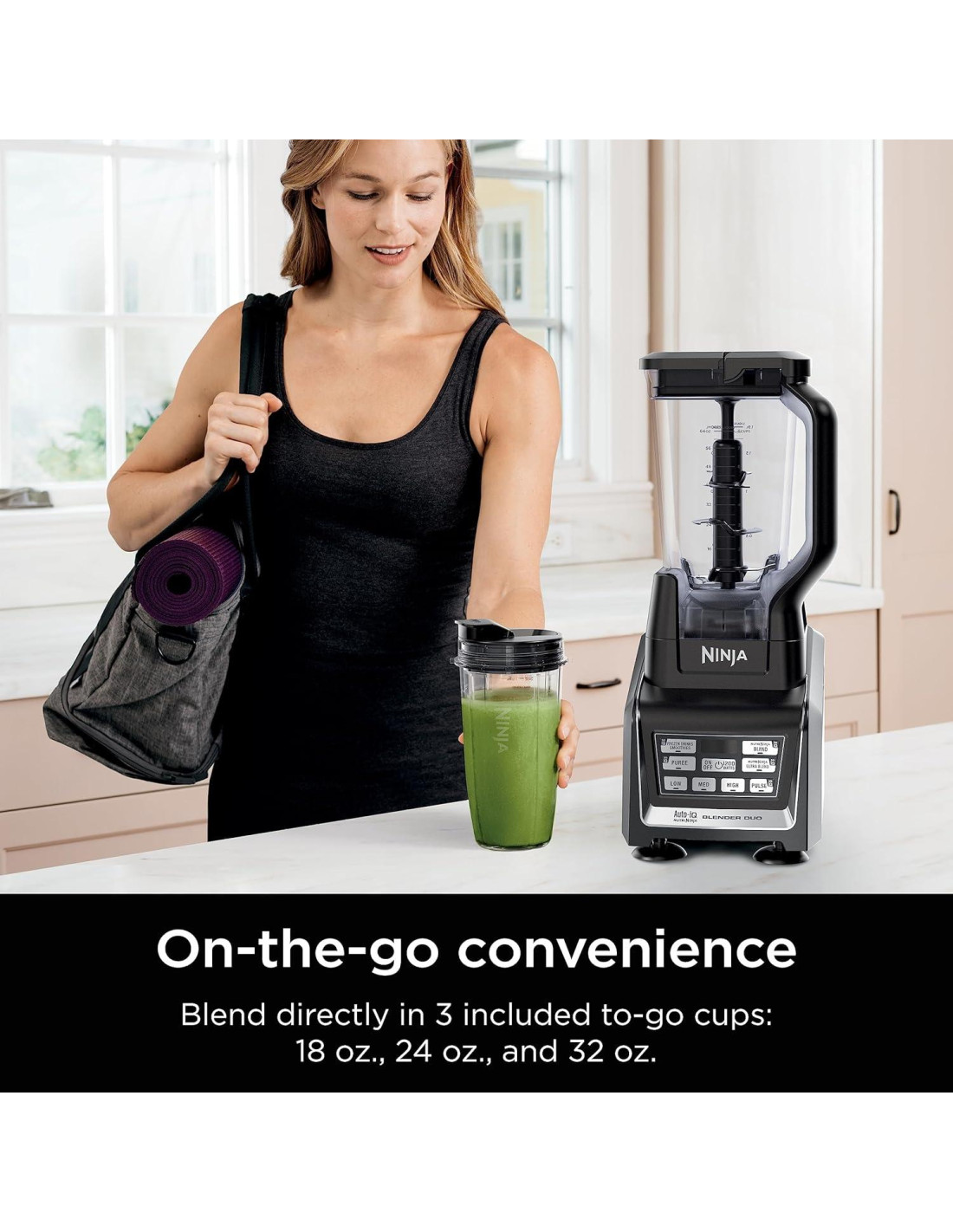 La Nutri Ninja | Ninja Blender Duo con Auto-iQ tiene 1200 vatios de potencia y rendimiento profesional. La Jarra XL de 72 oz. (capacidad máxima de líquido de 64 oz.) cuenta con Tecnología de Trituración Total para triturar hielo e ingredientes congelados en segundos y crear bebidas congeladas cremosas. El Conjunto de Cuchillas Nutri Ninja pulveriza frutas y verduras enteras para la Extracción de Nutrientes y Vitaminas (extraer una bebida que contenga vitaminas y nutrientes de frutas y verduras enteras). Mezcla batidos y jugos personalizados directamente en la Taza Nutri Ninja, coloca la tapa y disfruta mientras te desplazas.