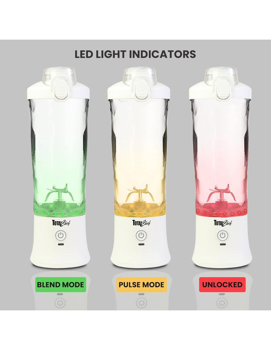 - INDICADORES LED COLORIDOS - La mini licuadora personal viene en 4 colores divertidos y tiene luces LED que parpadean en verde, amarillo y rojo para mostrar el nivel de batería, modo de mezcla y más!